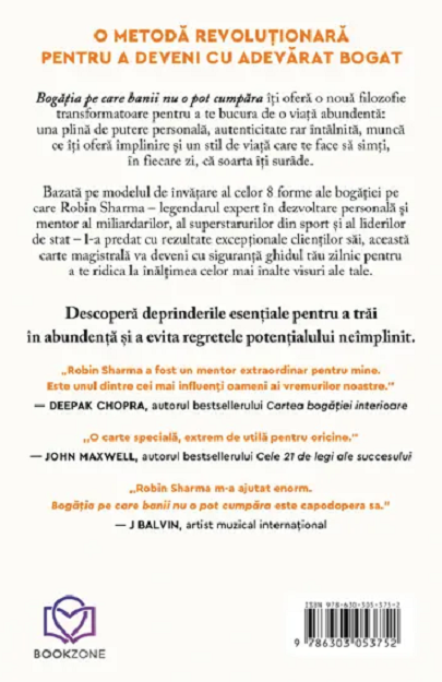 „În noua sa carte, Bogăția pe care banii nu o pot cumpăra, ideile despre abundența materială și spirituală pe care Sharma le-a schițat în povestea Călugărul care și-a vândut Ferrari-ul sunt plasate la baza unui protocol de dezvoltare personală cât de poate de clar, care ne propune să nu ne mai pierdem în căutarea prosperității materiale, ci să tratăm cu egală atenție toate cele 8 forme de bogăție din viața unui om.” – Mihai Morar