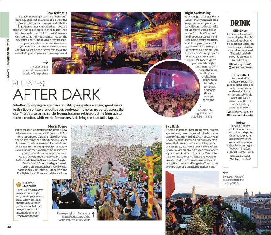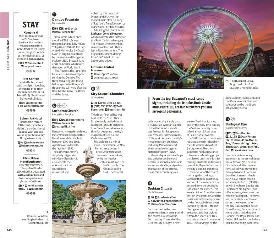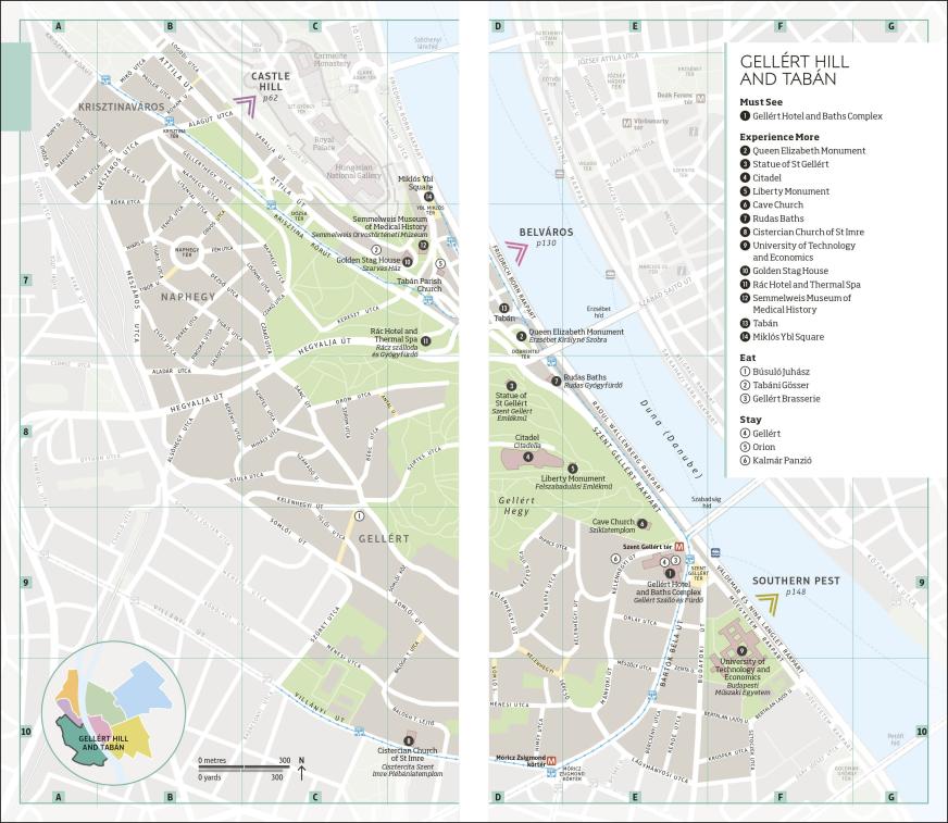 - colour-coded chapters to every part of Budapest, from Gellért Hill and Tabán to Southern Pest, Belváros to Víziváros