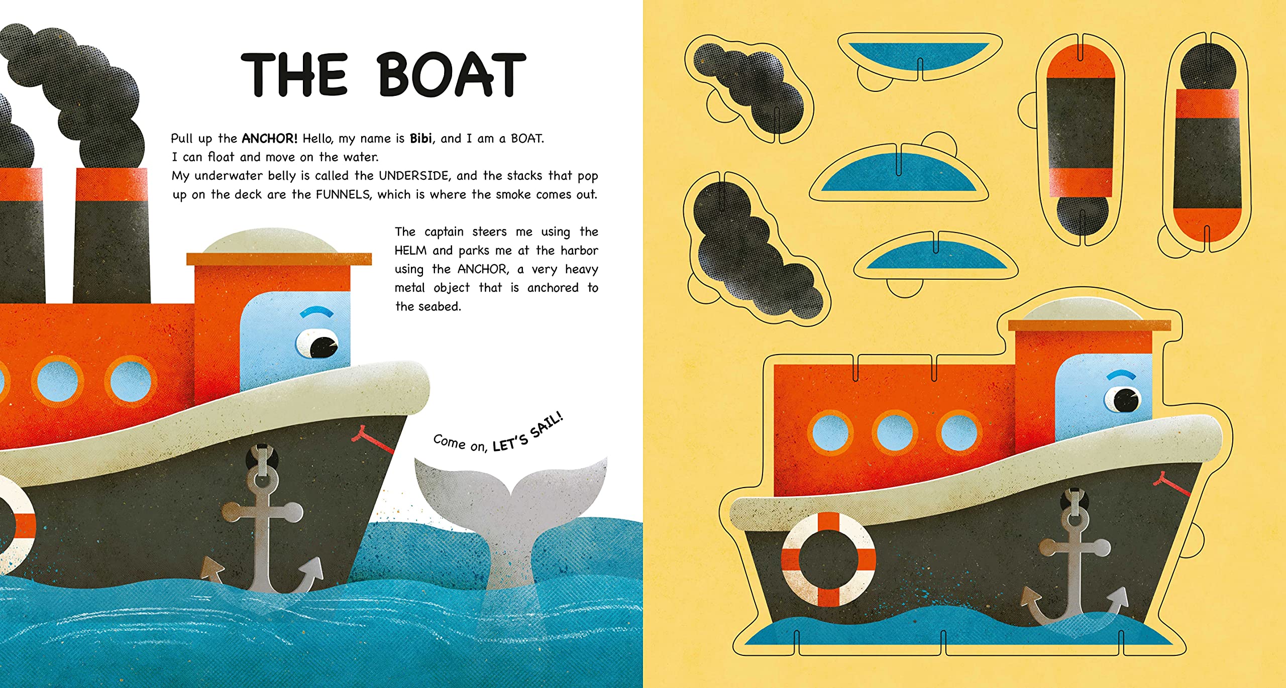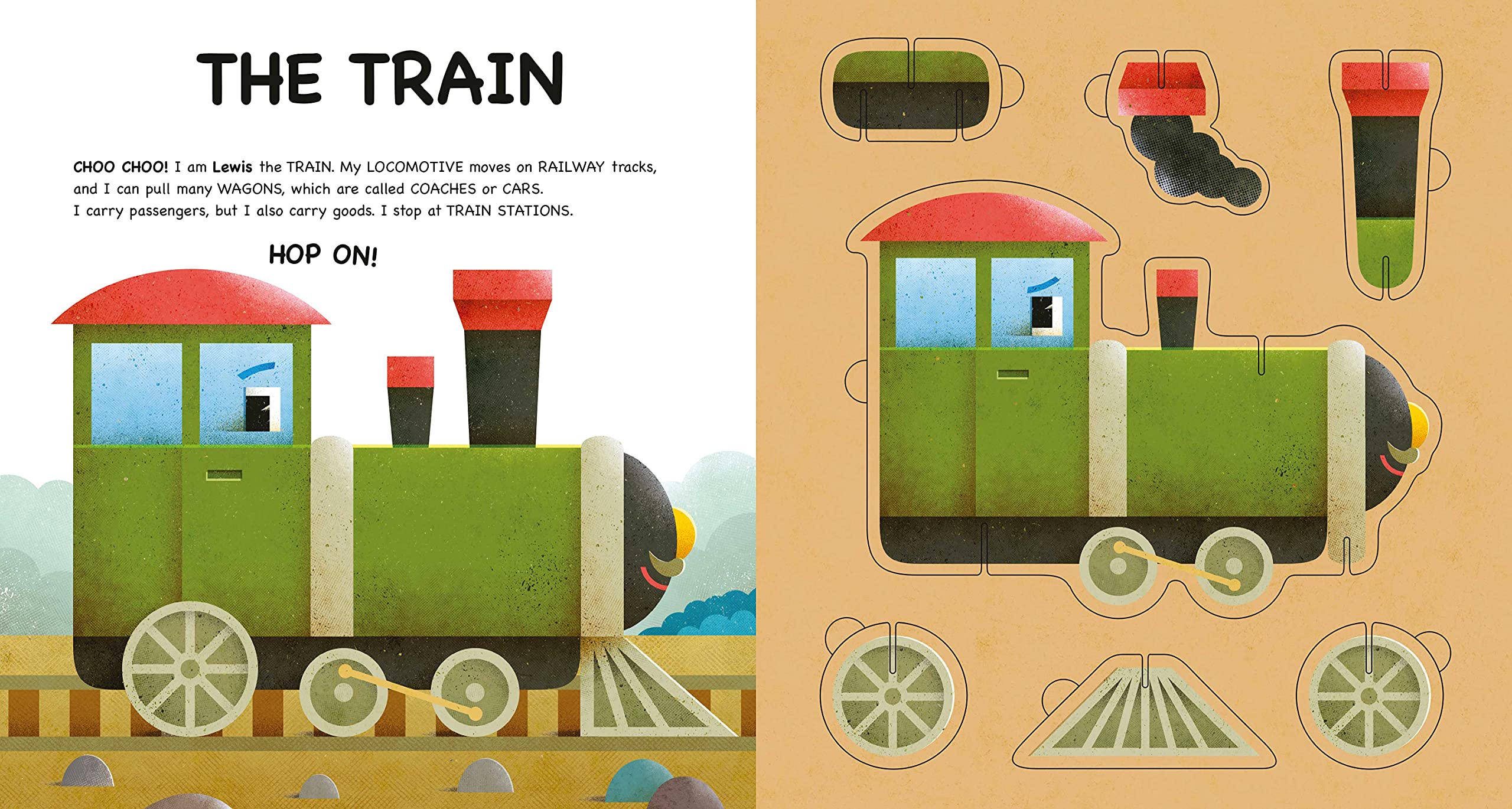 A new title joins the series of large build-up board books, developed for children aged 4 to 6 to teach them about their most beloved vehicles using a fun, playful approach. It includes short, simple texts that examine some of the most well-know vehicles such as cars, trains, boats, with detachable cardboard figures that can be used to create imaginary stories and adventures.