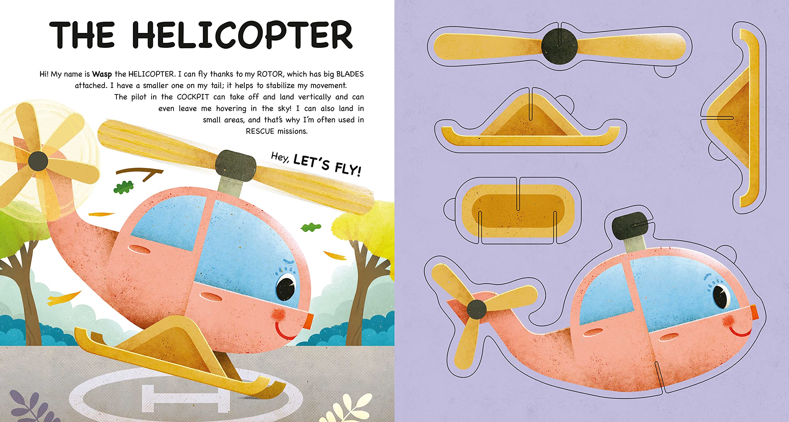 Children can detach the wonderful cardboard cut-outs from the page and build the 3D figures of most beloved vehicles to play with them for hours of fun.