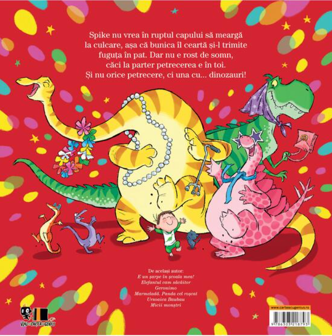 Spike nu vrea în ruptul capului să meargă la culcare, așa că bunica îl ceartă și-l trimite fuguța în pat. Dar nu e rost de somn, căci la parter petrecerea e în toi. Și nu orice petrecere, ci una cu... dinozauri!