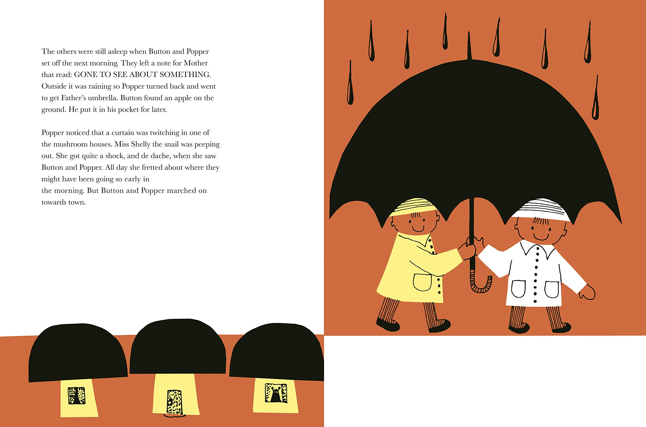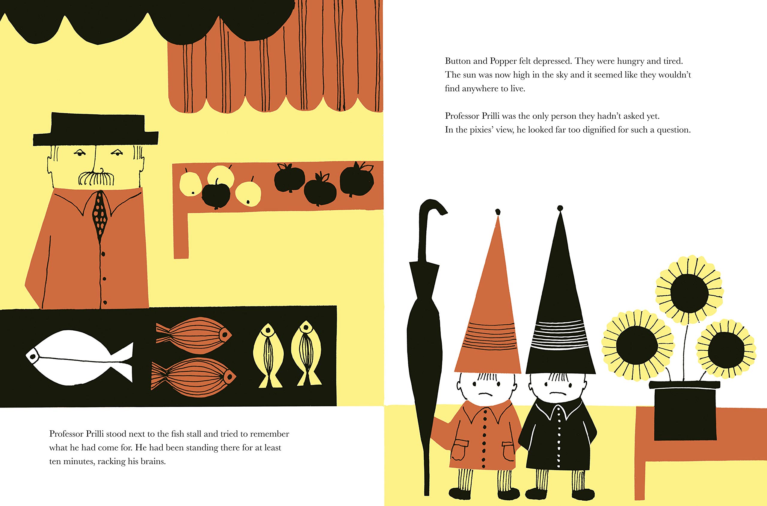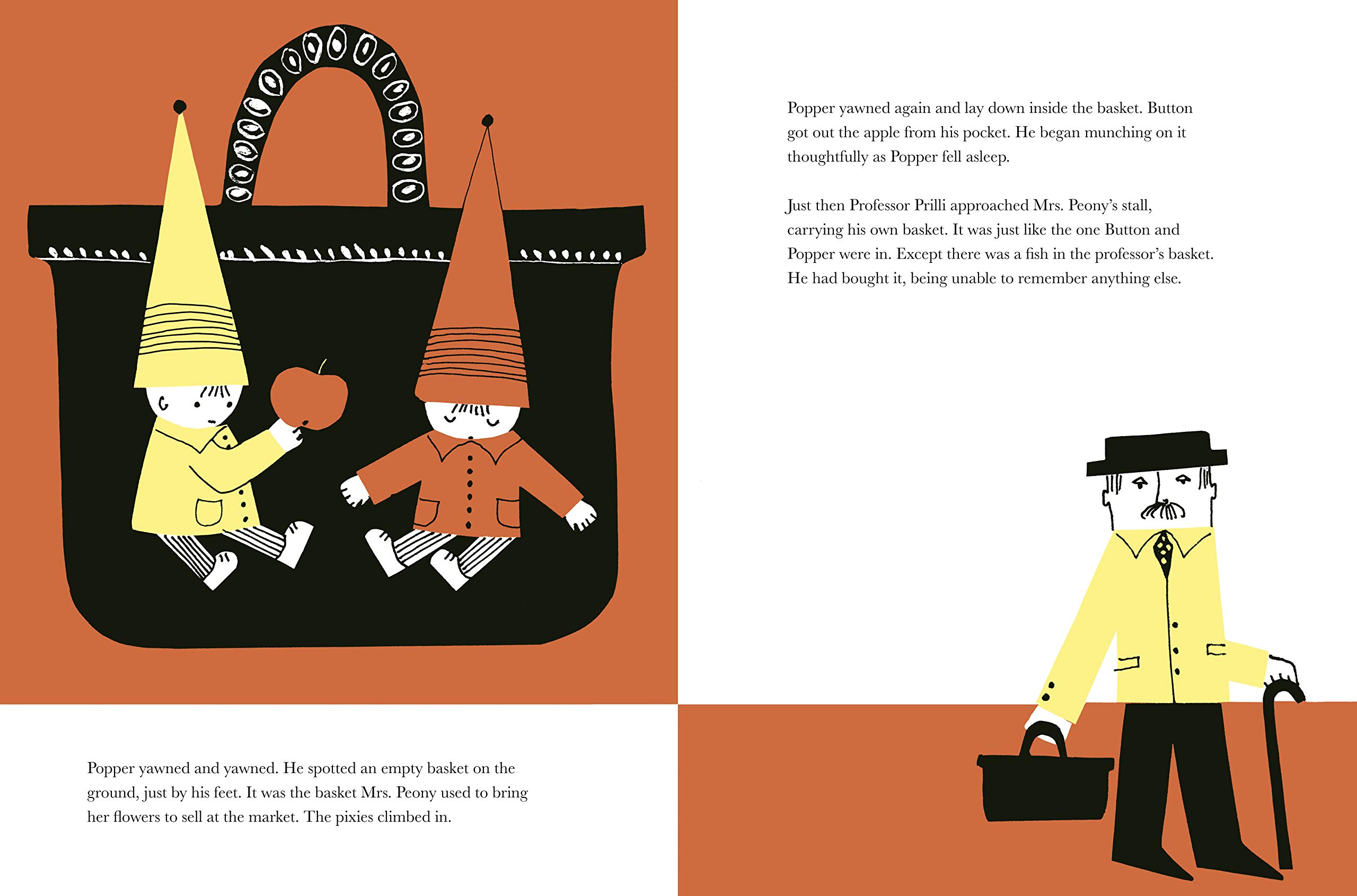 Button & Popper tells the story of a family of pixies (mother, father and twelve children) who live in an apple tree. They enjoy its warmth and shelter, and eating apple pie all spring and summer long. But when autumn comes, the leaves begin to drop and the apple tree becomes a cold and wet place to live. Twin brothers Button and Popper decided they will find their family a new home, but when they trek into the city and start enquiring about an apartment with room for twelve children and their parents, people just laugh or politely excuse themselves.