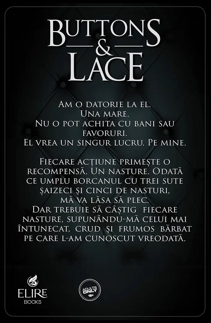 Între teroare și dorință, frică și pasiune, Buttons & Lace este începutul unei povești tulburătoare despre putere, supraviețuire și o iubire neașteptată.