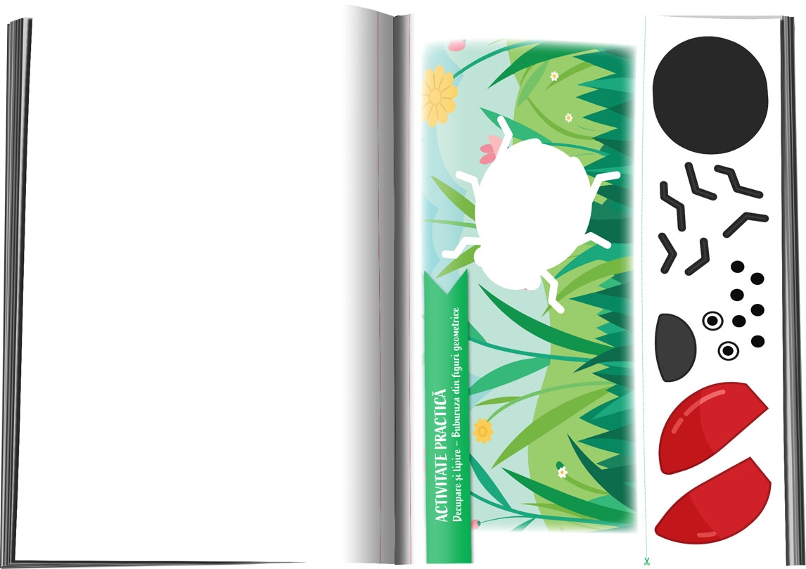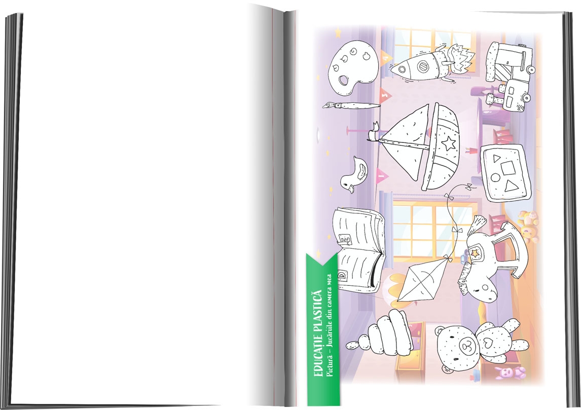 Unic pe piață, acest caiet cu file detașabile încurajează creativitatea și este un auxiliar foarte potrivit pentru activitățile artistice și de îndemânare de la grupa mare: desen, colorare, decupare, lipire, colaj, origami, șnuruire, bobinare etc. Fiecare activitate a fost concepută pentru a dezvolta atât motricitatea fină, cât și creativitatea copiilor.