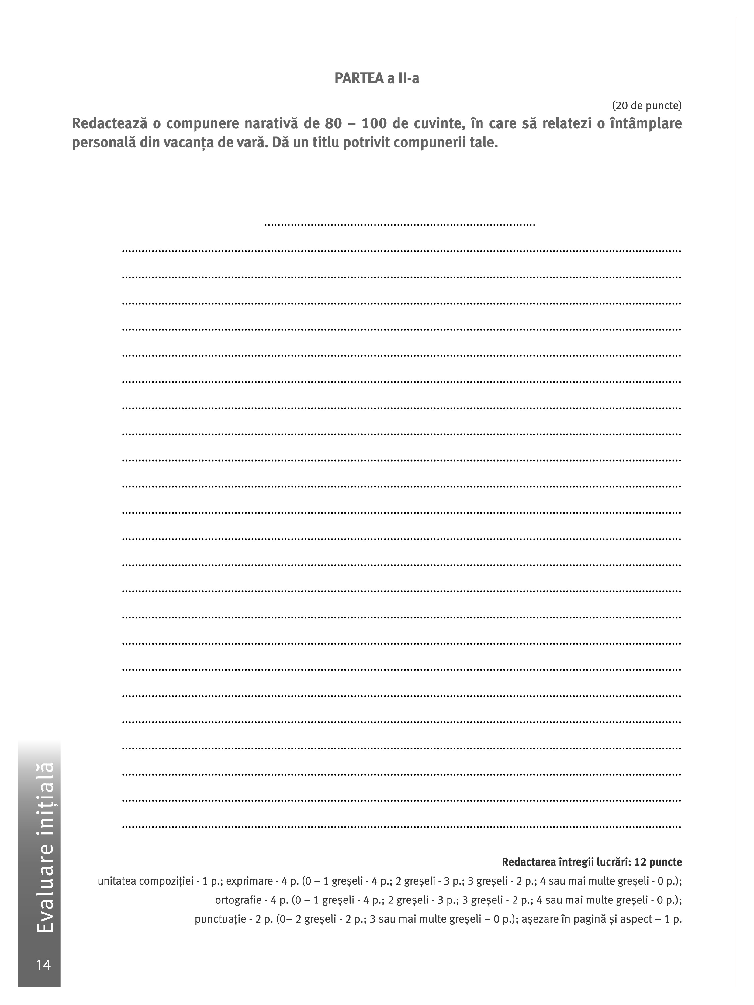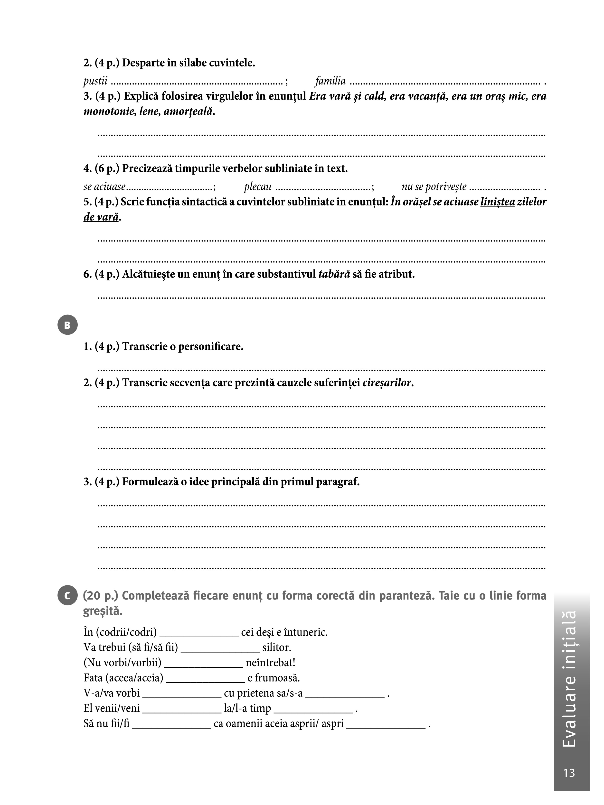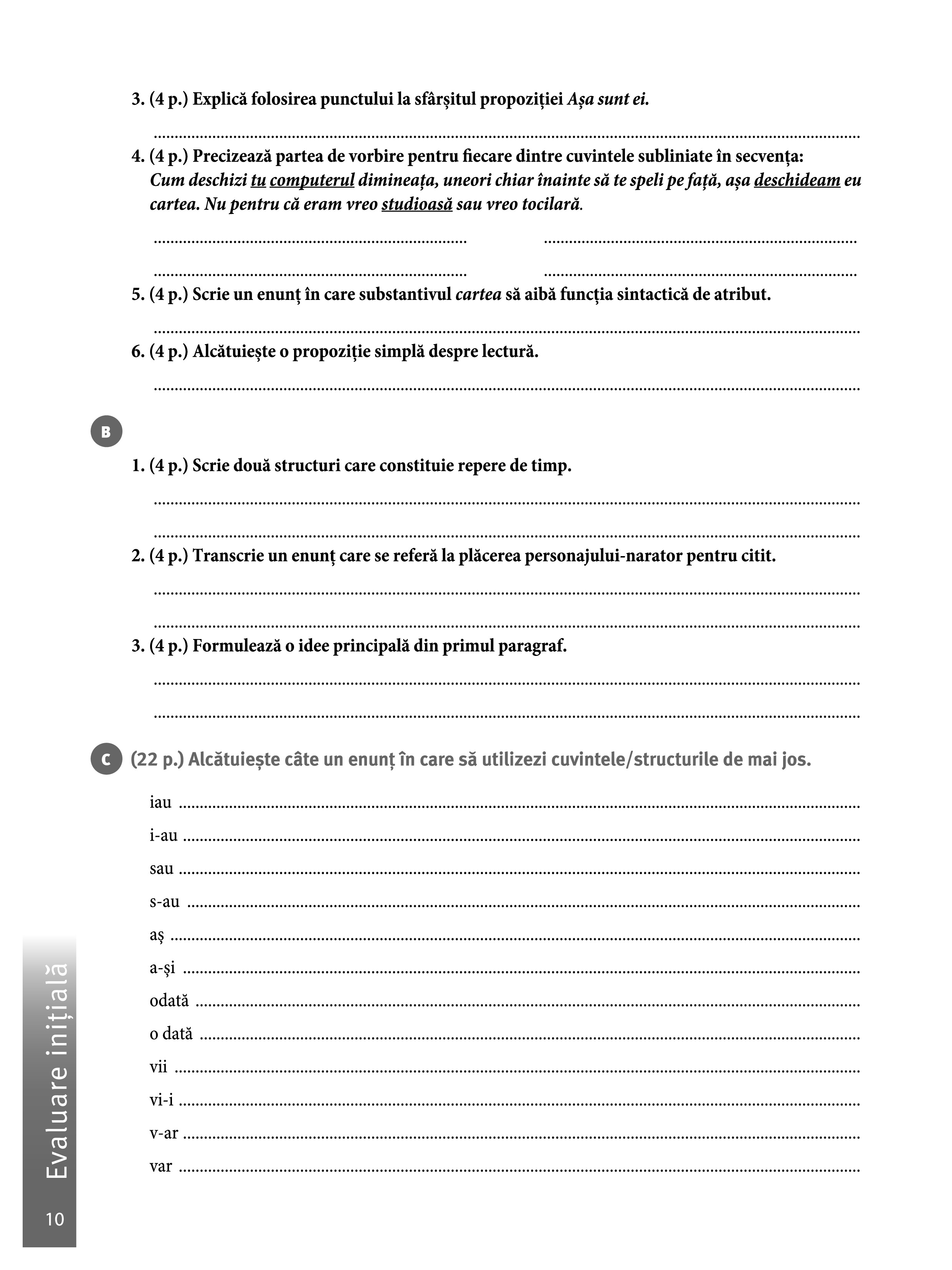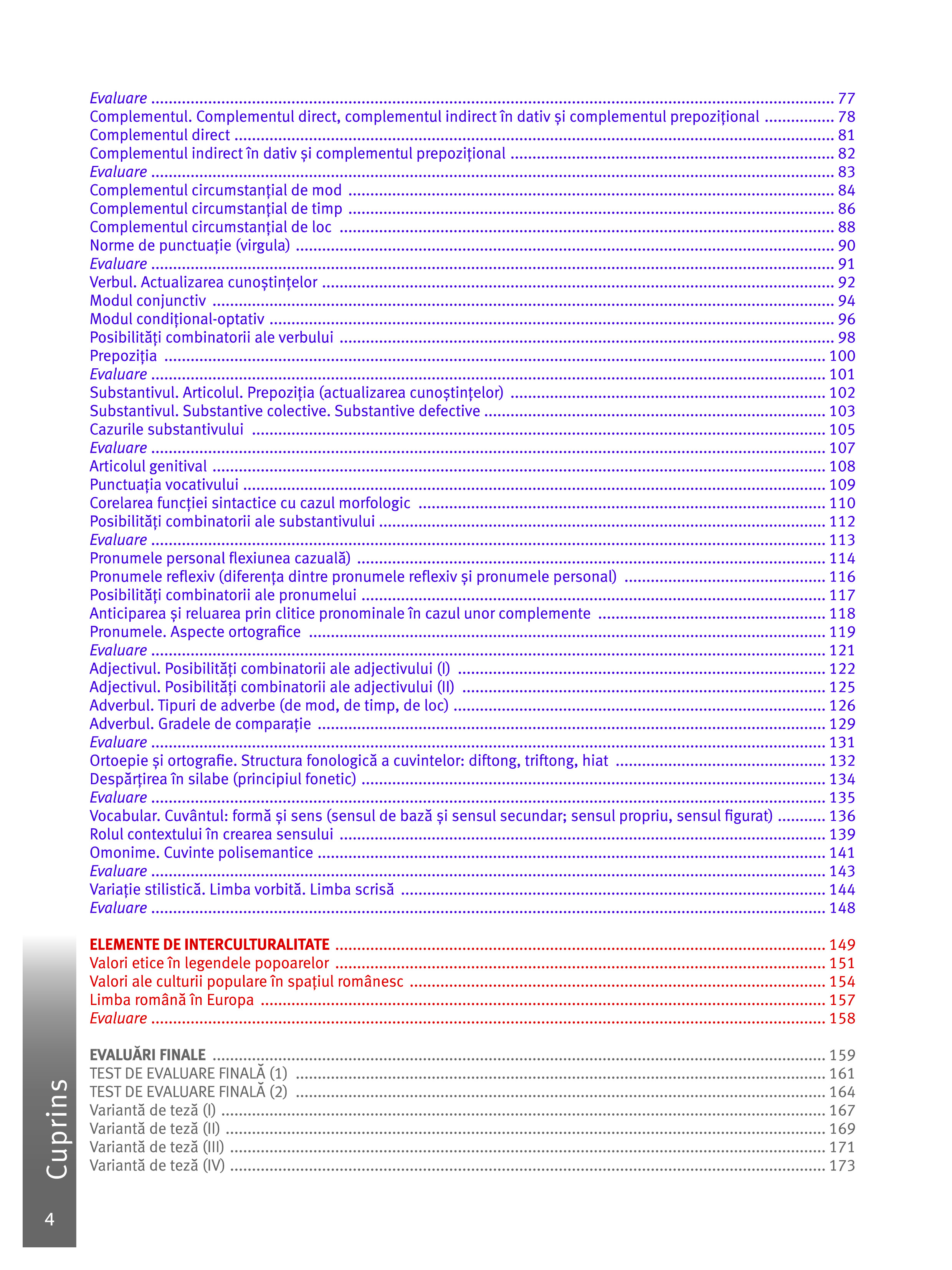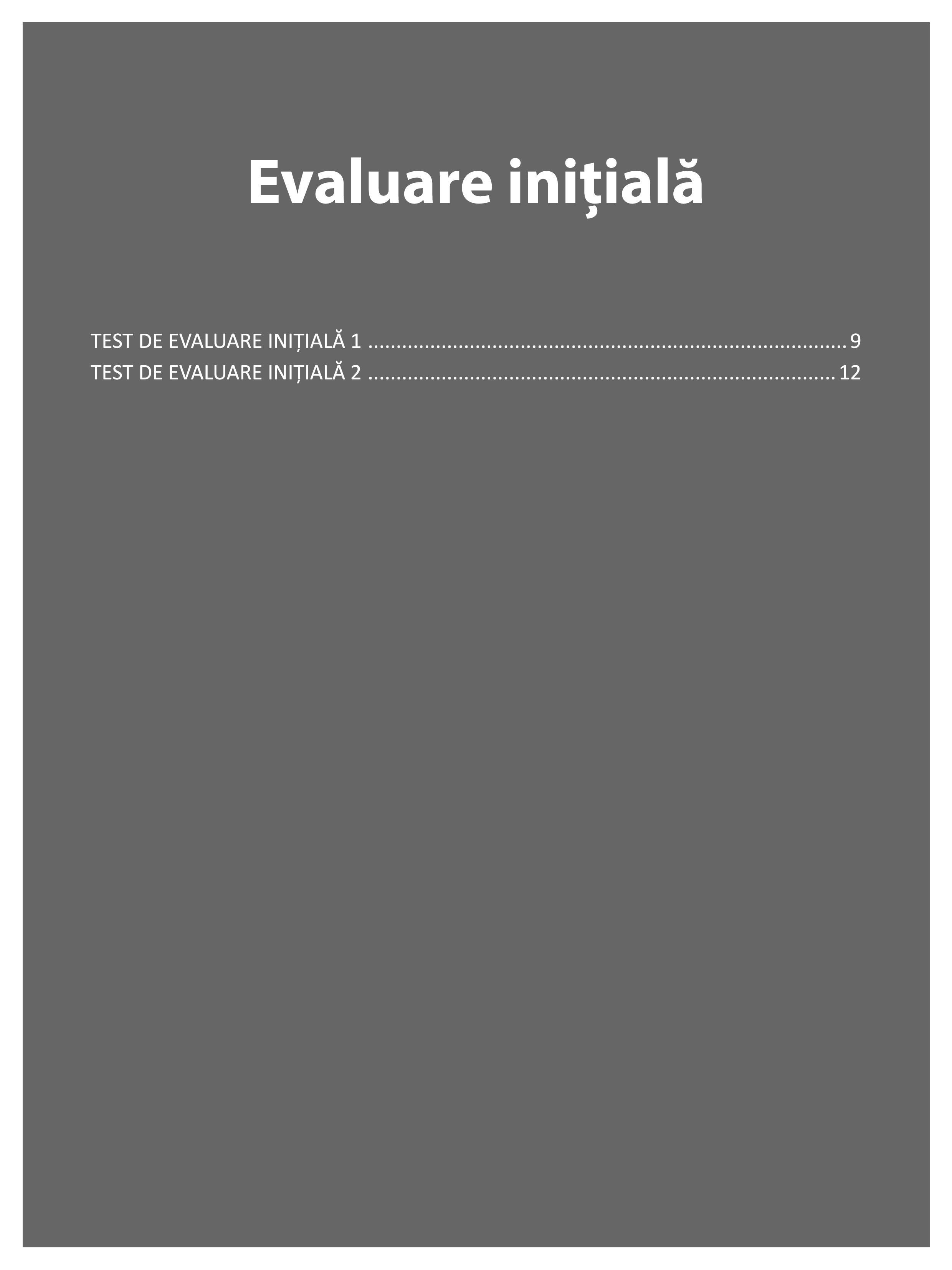 - cuprinde teste inițiale, teste sumative, teste de evaluare finală și variante de subiecte pentru teză.