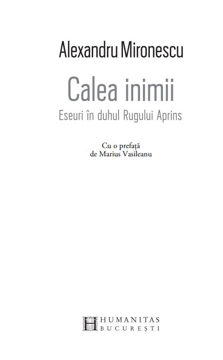 „Cultura noastră – lucrul acesta îmi apare foarte limpede – a ajuns la o mare răscruce: încă un pas greșit și, pentru multă vreme, întunericul o va înghiți. Reafirmarea ei depinde numai de putința noastră de rugăciune, de întâlnire cu noi înșine, de re-întoarcere la izvoarele originare ale vieții, ale existenței. Trebuie să aflăm din nou temeiurile încrederii în destinul nostru și în valorile vieții, ceea ce este totuna cu o recunoaștere a caracterului spiritual al atât de încercatei noastre umanități. Și – ca să rostim, încheind, ultimul cuvânt – reafirmarea culturii noastre înseamnă o redescoperire, înlăuntrul nostru cel mai adânc și mai tainic, a rădăcinilor religioase ale întregii creații.“ – ALEXANDRU MIRONESCU