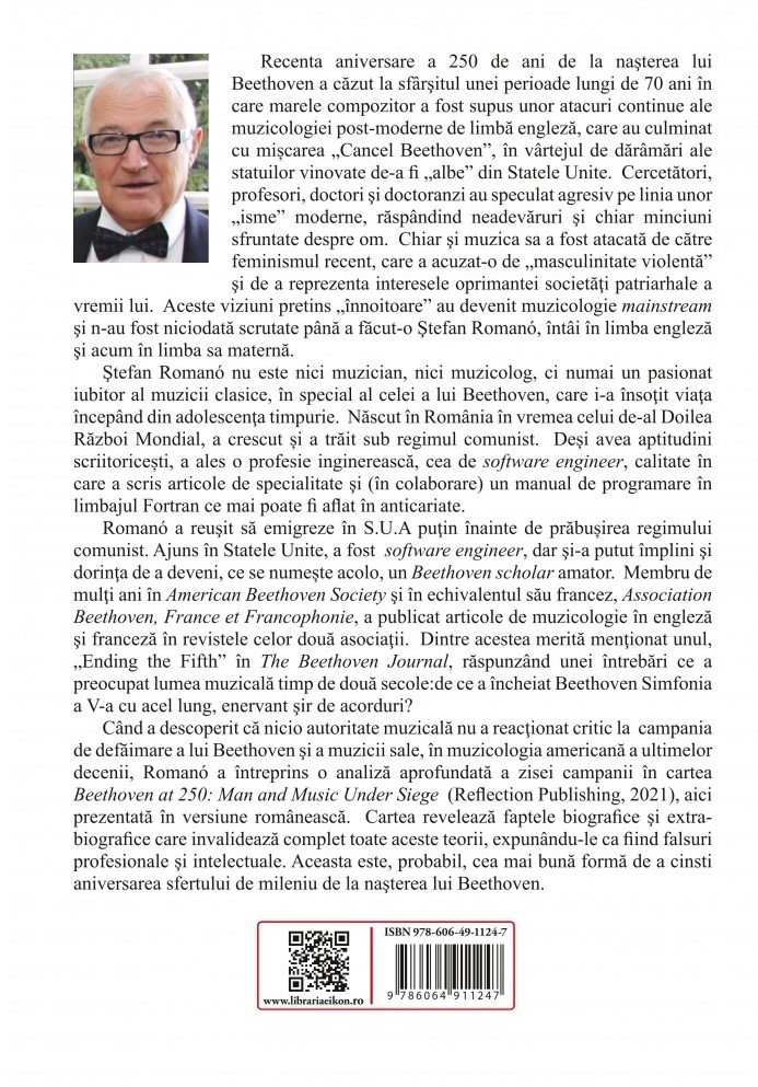 Când a descoperit că nicio autoritate muzicală nu a reacţionat critic la campania de defăimare a lui Beethoven şi a muzicii sale, în muzicologia americană a ultimelor decenii, Romanó a întreprins o analiză aprofundată a zisei campanii în cartea Beethoven at 250: Man and Music Under Siege (Reflection Publishing, 2021), aici prezentată în versiune românească.
