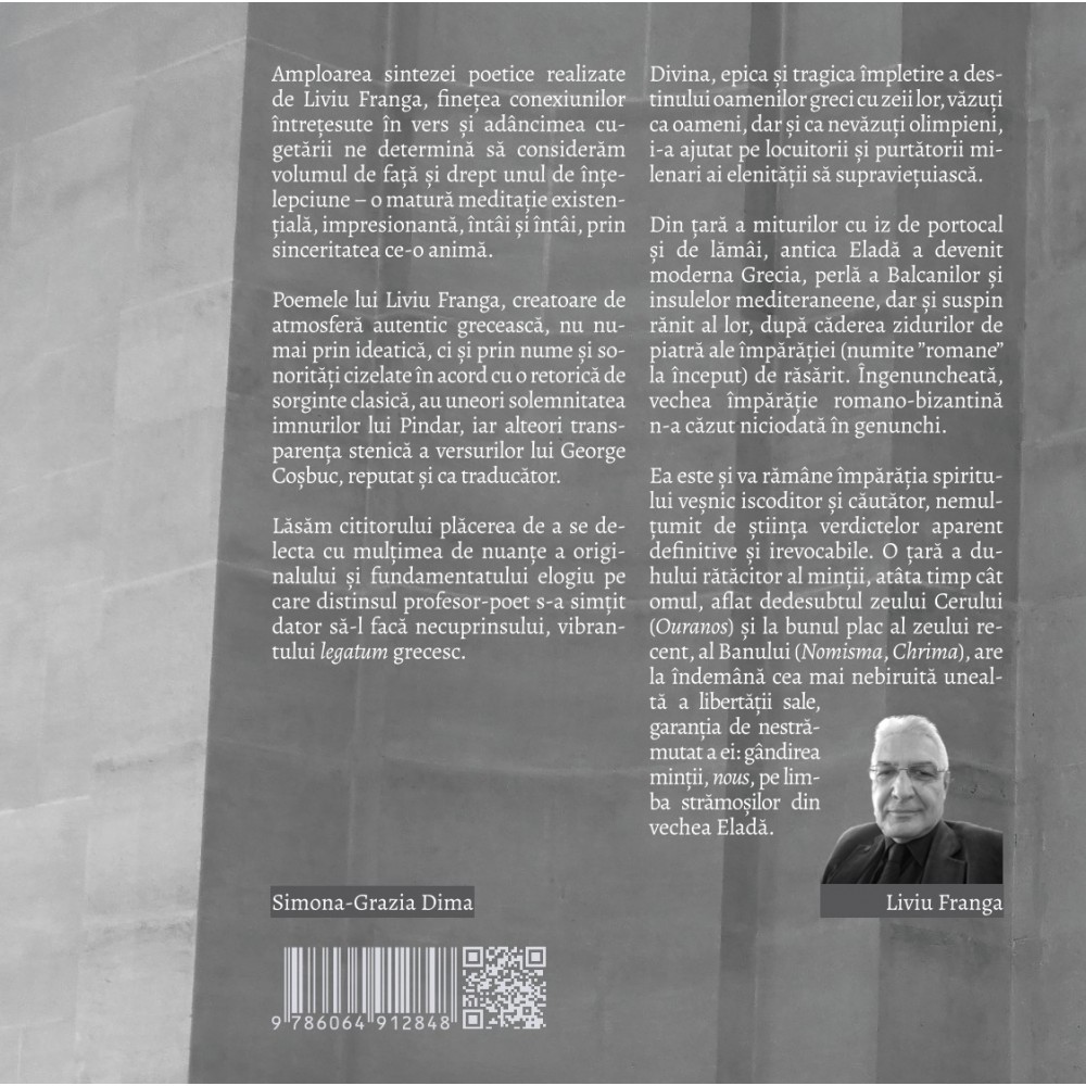 Poemele lui Liviu Franga, creatoare de atmosferă autentic grecească, nu numai prin ideatică, ci și prin nume și sonorități cizelate în acord cu o retorică de sorginte clasică, au uneori solemnitatea imnurilor lui Pindar, iar alteori transparența stenică a versurilor lui GeorgeCoșbuc, reputat și ca traducător.