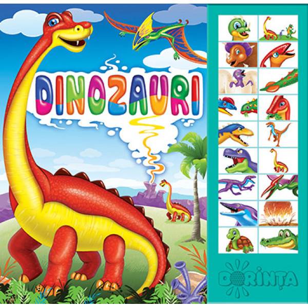 Picii își vor satisface curiozitatea apăsând pe butoane și urmărind acțiunea în excepționalele ilustrații cu diferite specii de dinozauri erbivori și carnivori, de la cei mai mici la cei mai gigantici care au populat Pământul în Triasic, Jurasic și Cretacic.