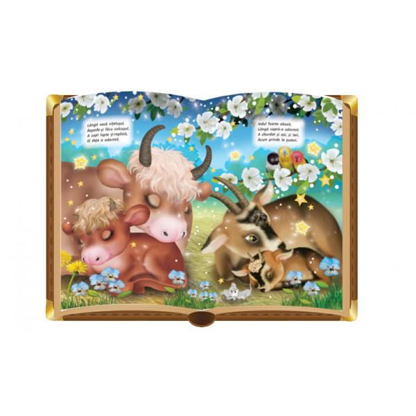 Micii curiosi sunt greu de adormit după o zi plina de activități și emoții, cartea le va ajuta să-și formeze un ritual înainte de somn răsfoind fiecare pagină, apăsând pe butoane și ascultând poeziile de noapte bună. Cartea este de mare ajutor pentru adulți, fiind o soluție de ai sustrage pe micuți de la zbenguială.