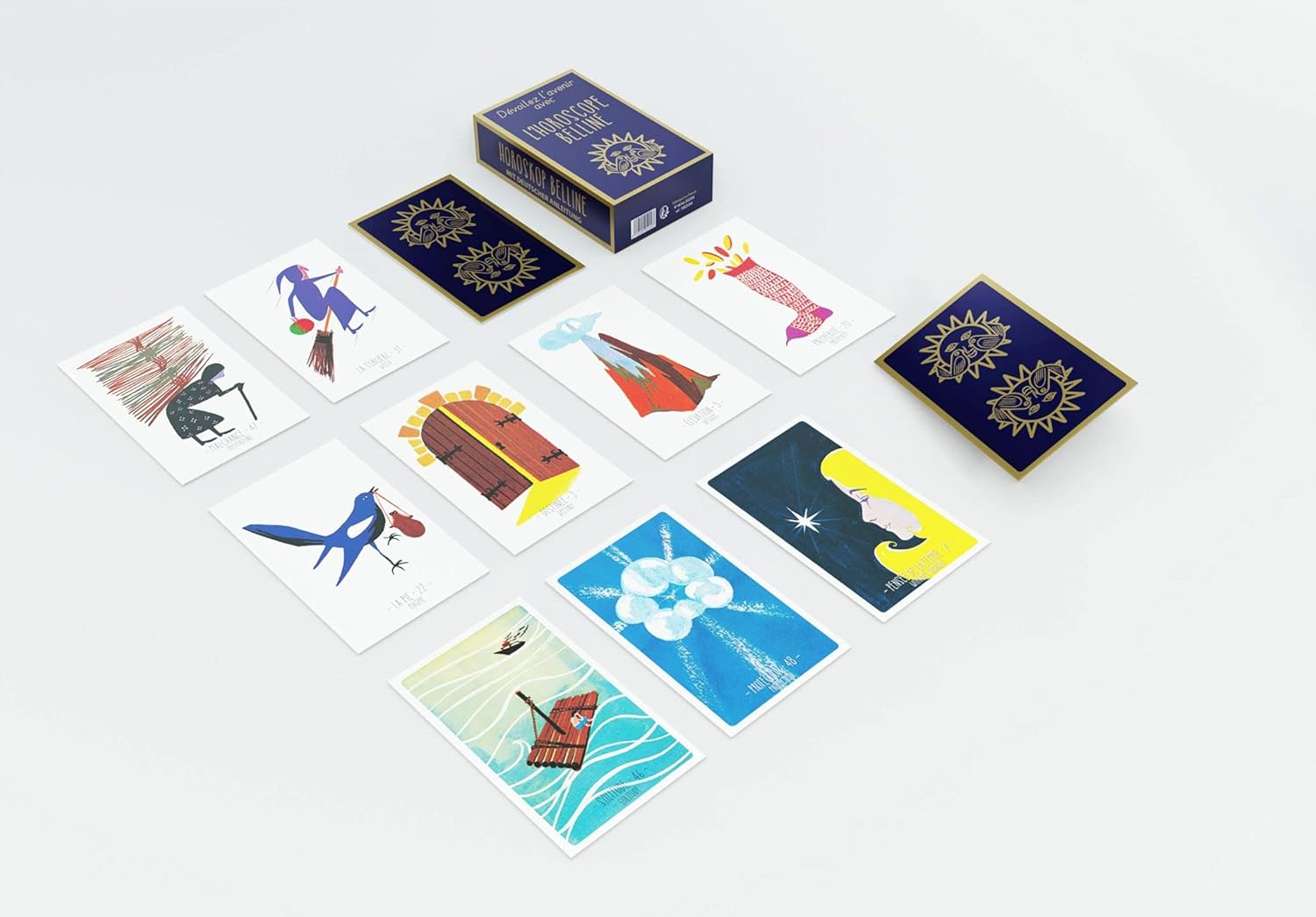 Ce jeu de cartes 'L'Horoscope Belline' se compose de 54 cartes et est un jeu simple pour les passionnés et ceux qui s'intéressent à la divination. Grâce à l'Horoscope Belline vous allez bientôt connaître vos propres peurs et découvrir la lumière là où tout n'était qu'une ombre sur votre destin. Un manuel trilingue en français, anglais et allemand est inclus.