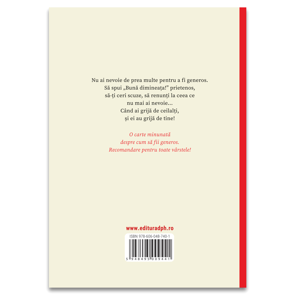Cartea prezintă diverse situații în care personajele demonstrează generozitate și amabilitate. Ilustrațiile colorate și pline de viață ale autoarei contribuie la transmiterea mesajului într-un mod atractiv și accesibil pentru copii.