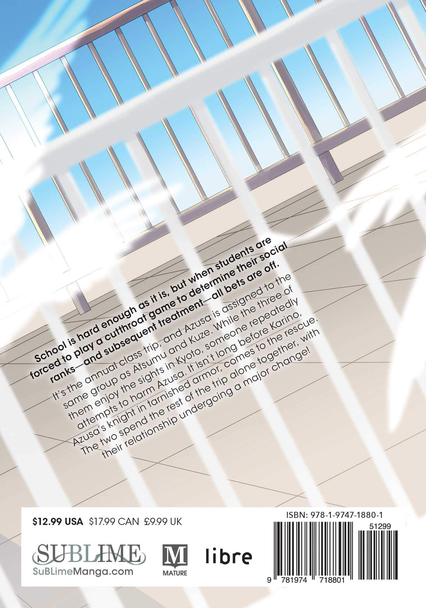 It's the annual class trip, and Azusa is assigned to the same group as Atsumu and Kuze. While the three of them enjoy the sights in Kyoto, someone repeatedly attempts to harm Azusa. It isn't long before Karino, Azusa's knight in tarnished armor, comes to the rescue. The two spend the rest of the trip alone together, with their relationship undergoing a major change!