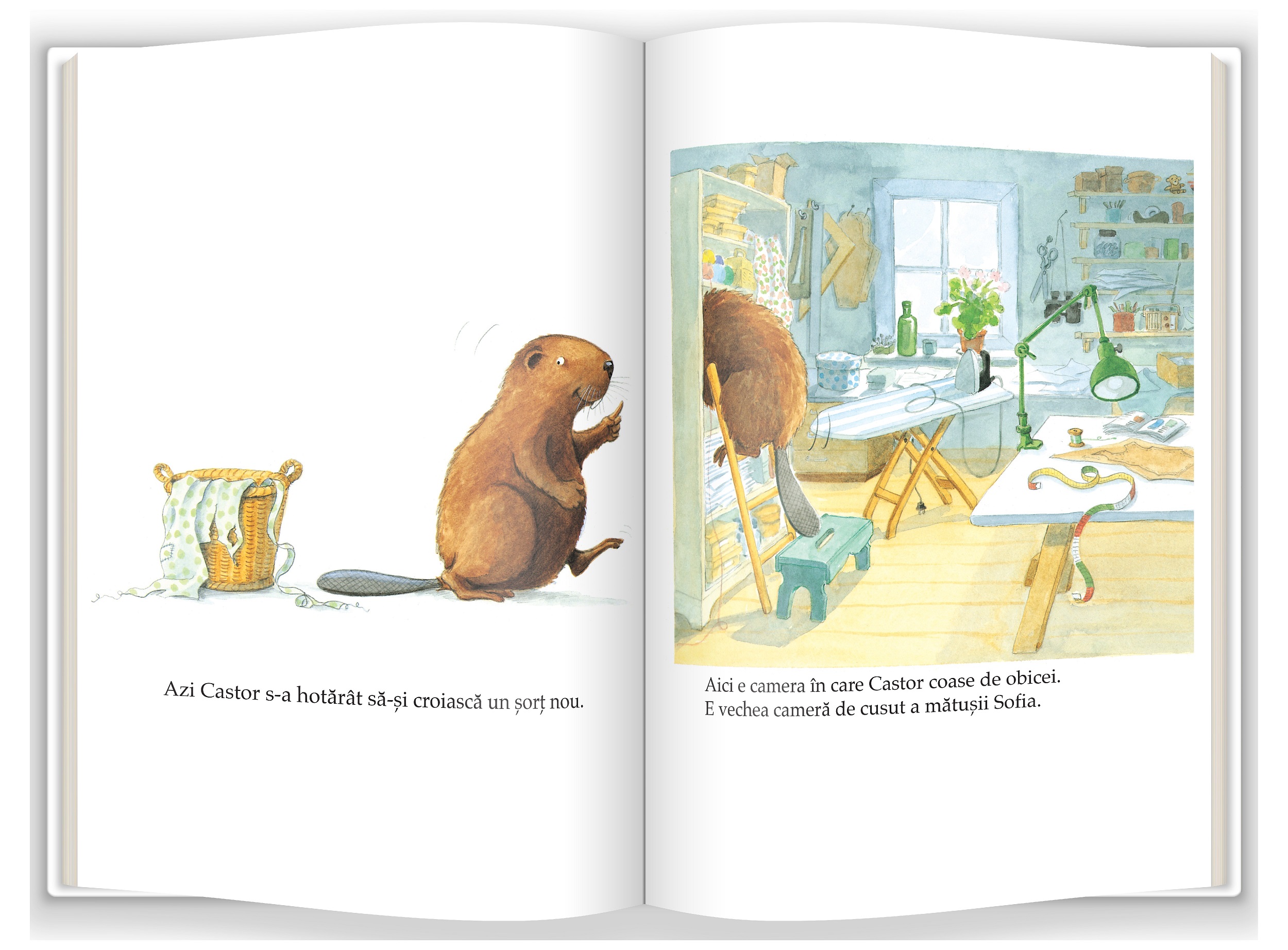 Seria „Castor” a fost imaginată de Lars Klinting (1948-2006), scriitor și ilustrator foarte îndrăgit în Suedia. Lars nu a studiat niciodată arta. În tinerețe, a fost tâmplar, apoi și-a dorit să predea, dar și să scrie și să ilustreze pentru copii. Castor seamănă foarte bine cu creatorul lui: este curios, conștiincios, metodic și plin de creativitate. În acest volum, veți descoperi alături de el cum să croiți un șorț.