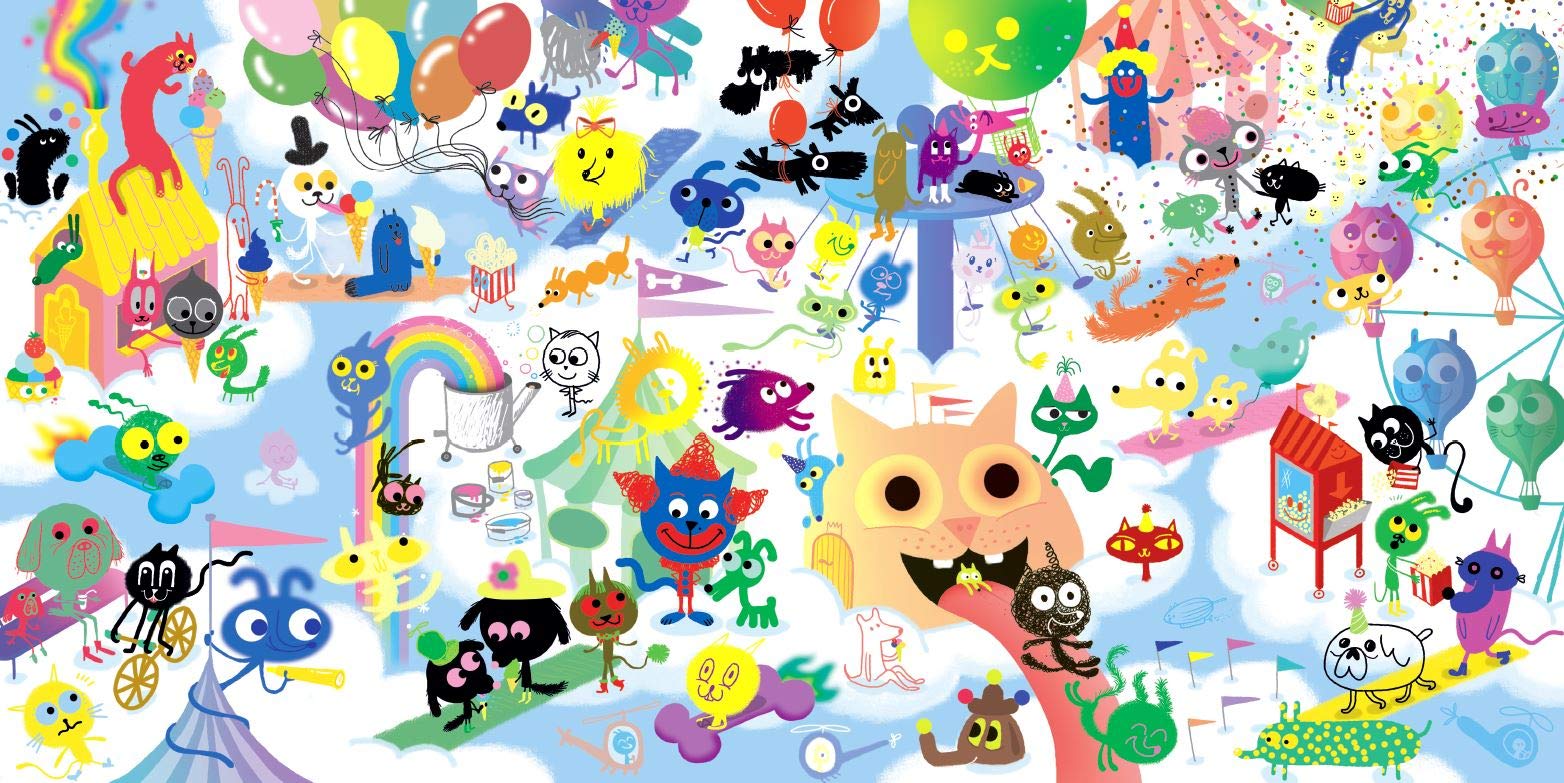 Cats and dogs rule-and wreak humorous havoc-in this innovative picture book that reads from front to back and back to front! In this action-packed follow-up to Find Me: A Hide-and-Seek Book, readers will delight in tracking a sly cat, Big Meow, and an elusive dog, Little Woof, through 11 richly detailed scenes populated with dogs, cats, and other cute creatures. Finding each protagonist is made even more fun with vibrant color changes on every page. Open the book from the front to search for Big Meow, then open the book from the back to turn the tables and catch Little Woof. It's two seek-and-find experiences in one book!