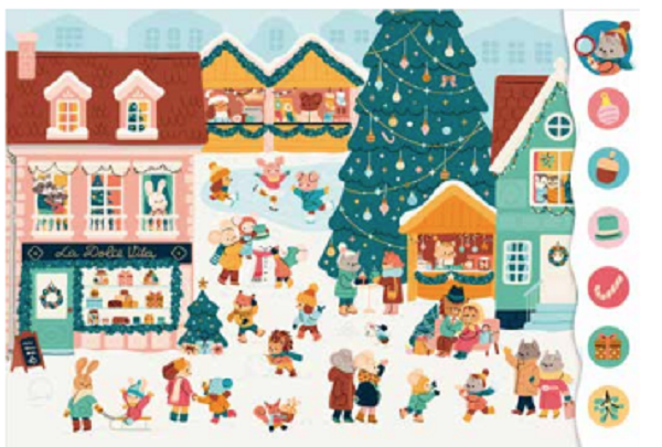 Cei mici pot folosi cartea singuri, căutând și descoperind decorațiunile de Crăciun ascunse, dar și personajele amuzante și obiectele festive din fiecare scenă.