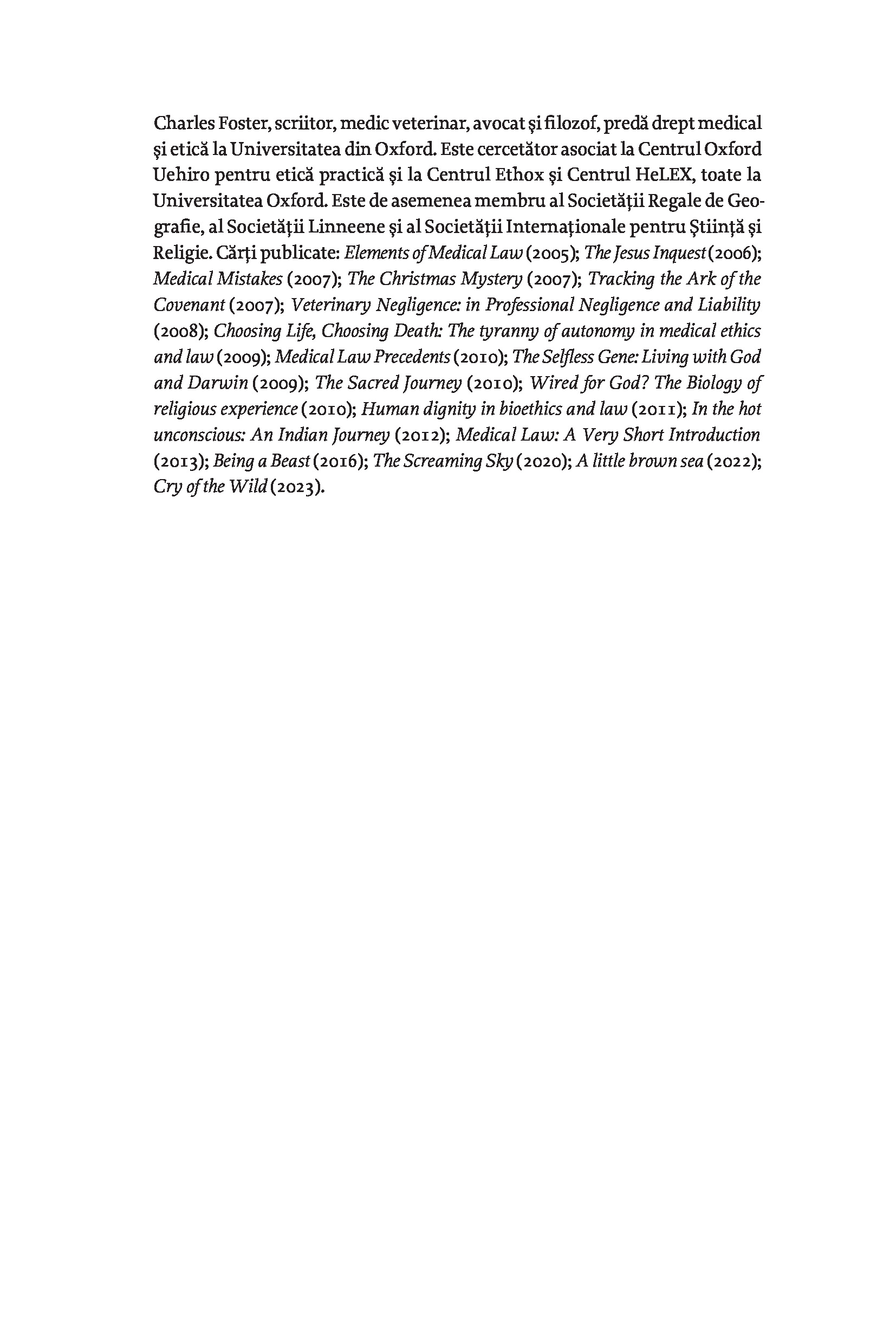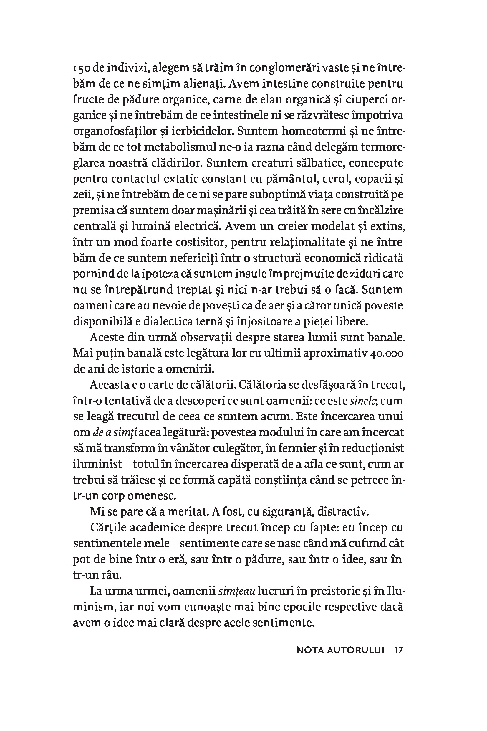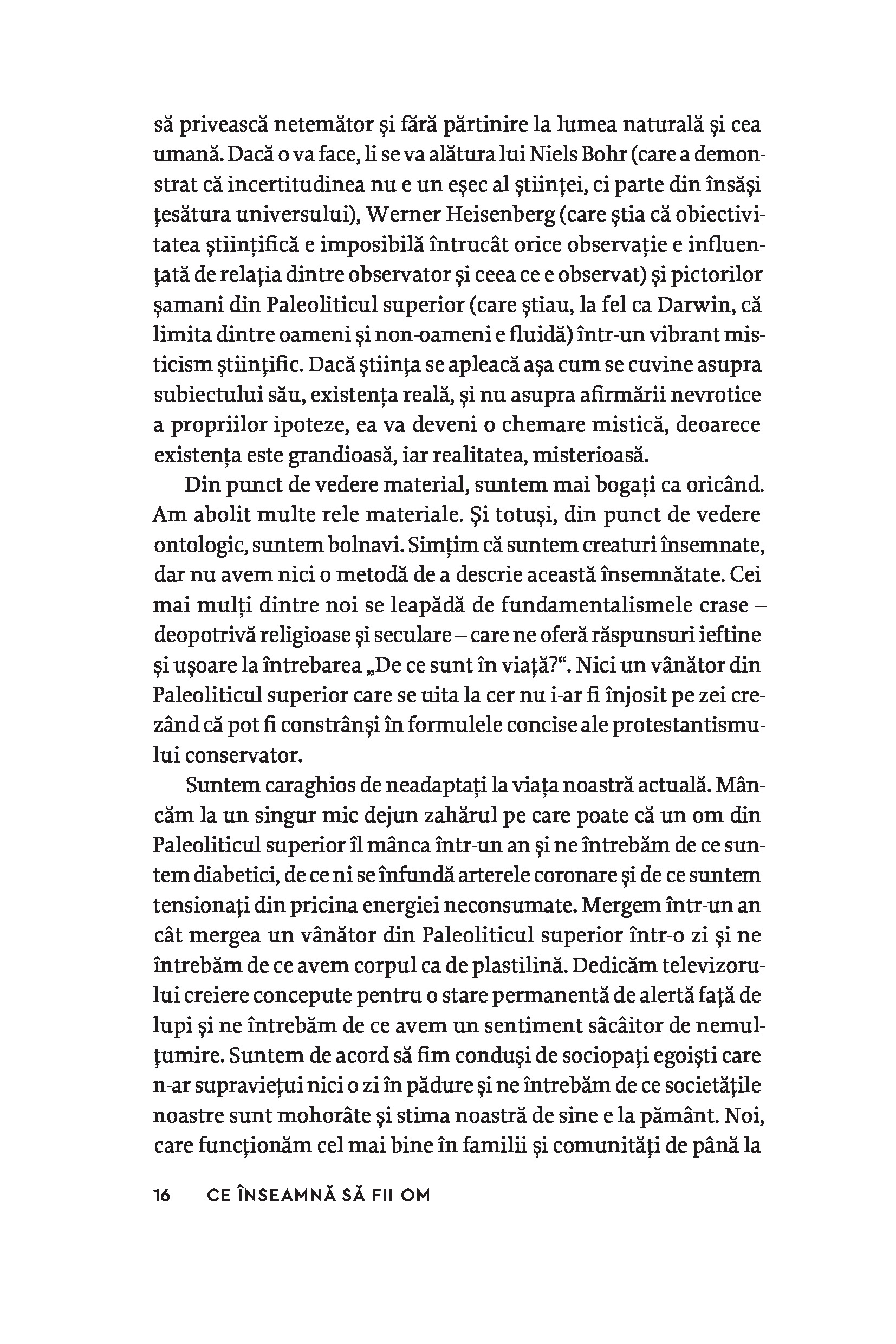 Mai mult decât o carte, Ce înseamnă să fii om este o experiență, o călătorie în miezul conștiinței noastre. Printr-o combinație unică de relatări personale, meditații filozofice și experimente captivante, Charles Foster, profesor la Oxford University, ne face să regândim limitările viziunii moderne și raționale asupra lumii și să explorăm adâncurile minții umane. Dincolo de perspectivele științifice, de aluziile literare și de reflecțiile introspective, autorul ne cheamă să-l însoțim într-o cercetare experimentală a condiției strămoșilor noștri, încercând să trăiască la fel ca vânătorii-culegători din Paleolitic sau ca fermierii din Neolitic. Aceste experimente făcute pe viu nu sunt simple cascadorii, ci încercări autentice de a înțelege senzațiile, gândurile și provocările care au stat la baza umanității noastre.