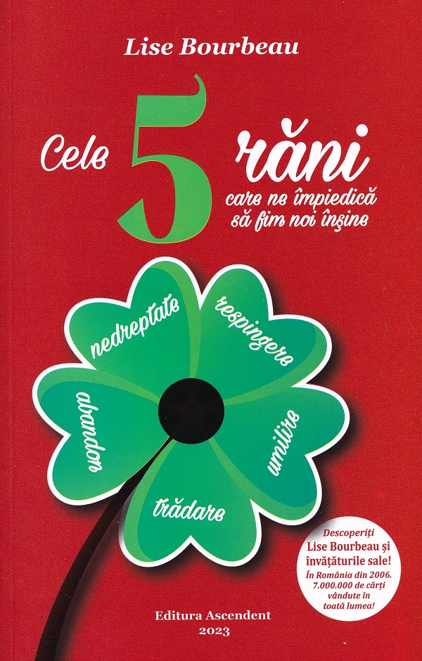 Aceasta noua carte a doamnei Lise Bourbeau, la fel de concreta ca si cele dinainte, demostreaza faptul ca toate dificulatile de ordin fizic, emotional sau mental isi au originea in cinci rani importante: respingerea, abandonul, umilirea, tradarea si nedreptatea. Datorita unei descrieri foarte amanuntite a acestor rani si a mastilor pe care le-ati creat pentru a nu le vedea, simti si mai ales pentru a nu le recunoaste, veti reusi sa identificati cauzele reale ale unei anumite probleme din viata voastra.