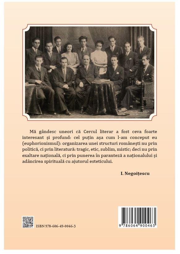 Mă gândesc uneori că Cercul literar a fost ceva foarte interesant şi profund: cel puţin aşa cum l-am conceput eu (euphorionismul): organizarea unei structuri româneşti nu prin politică, ci prin literatură: tragic, etic, sublim, mistic; deci nu prin exaltare naţională, ci prin punerea în paranteză a naţionalului şi adâncirea spirituală cu ajutorul esteticului. - I. Negoițescu