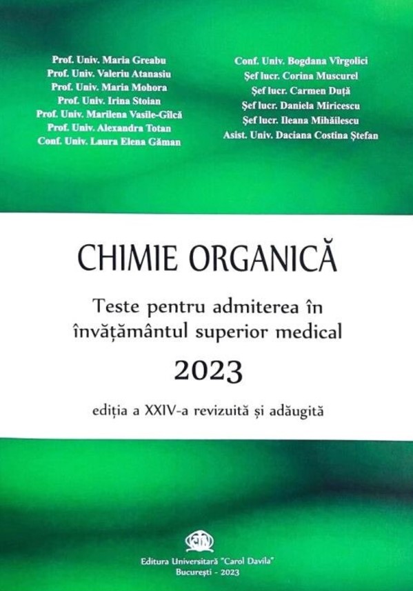 Chimie organica 2023. Teste pentru admiterea in invatamantul superior medical, editia a XXIV-a revizuita si adaugita