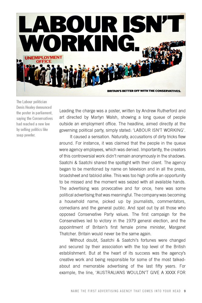 Responsible for generating some of the most memorable and groundbreaking advertising of the last fifty years, Saatchi & Saatchi became infamous in their own right. Made up of maverick thinkers and ingenious talent, they broke rules and won big pitches, attracting the business of some of the world's most successful companies.