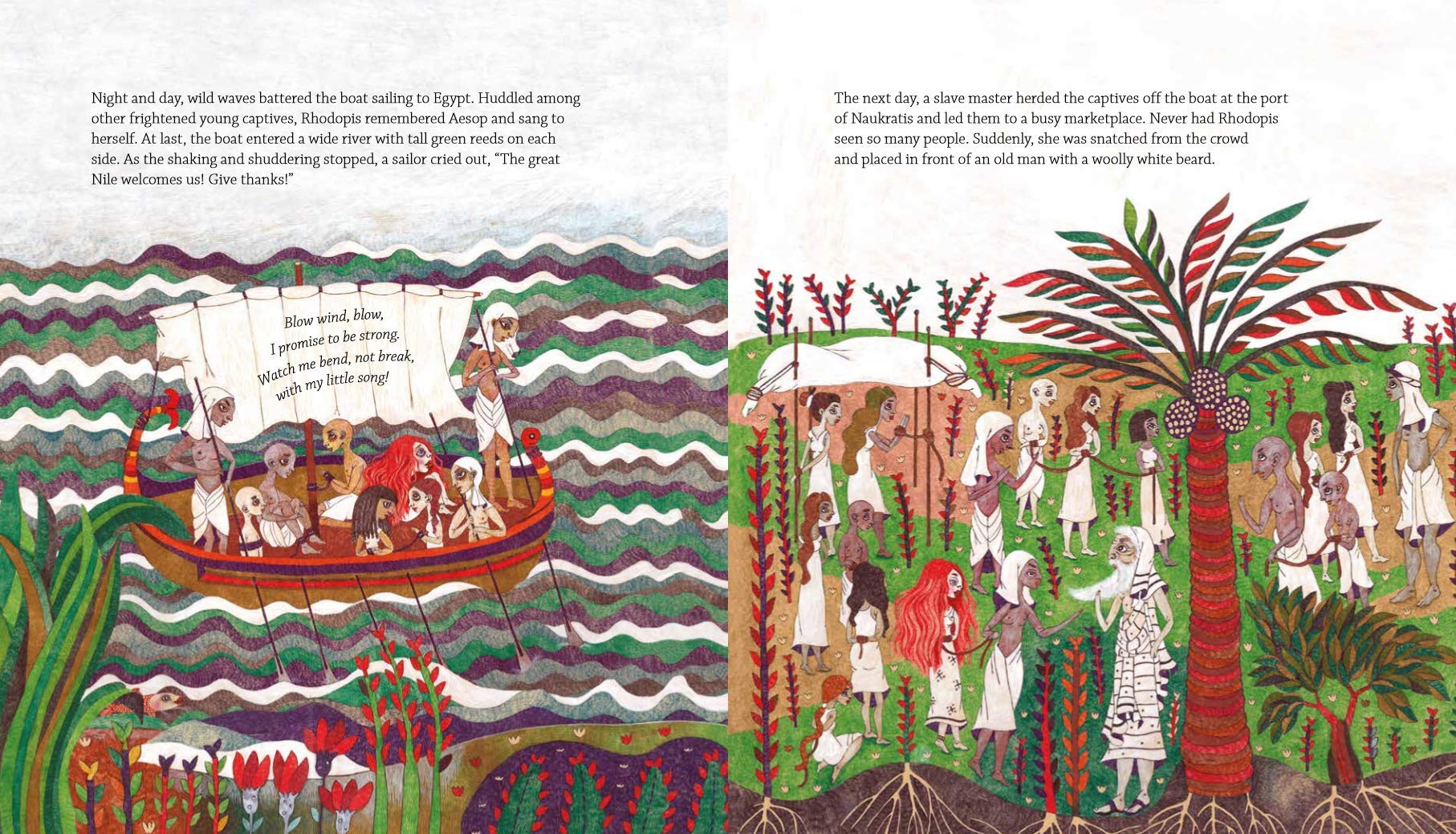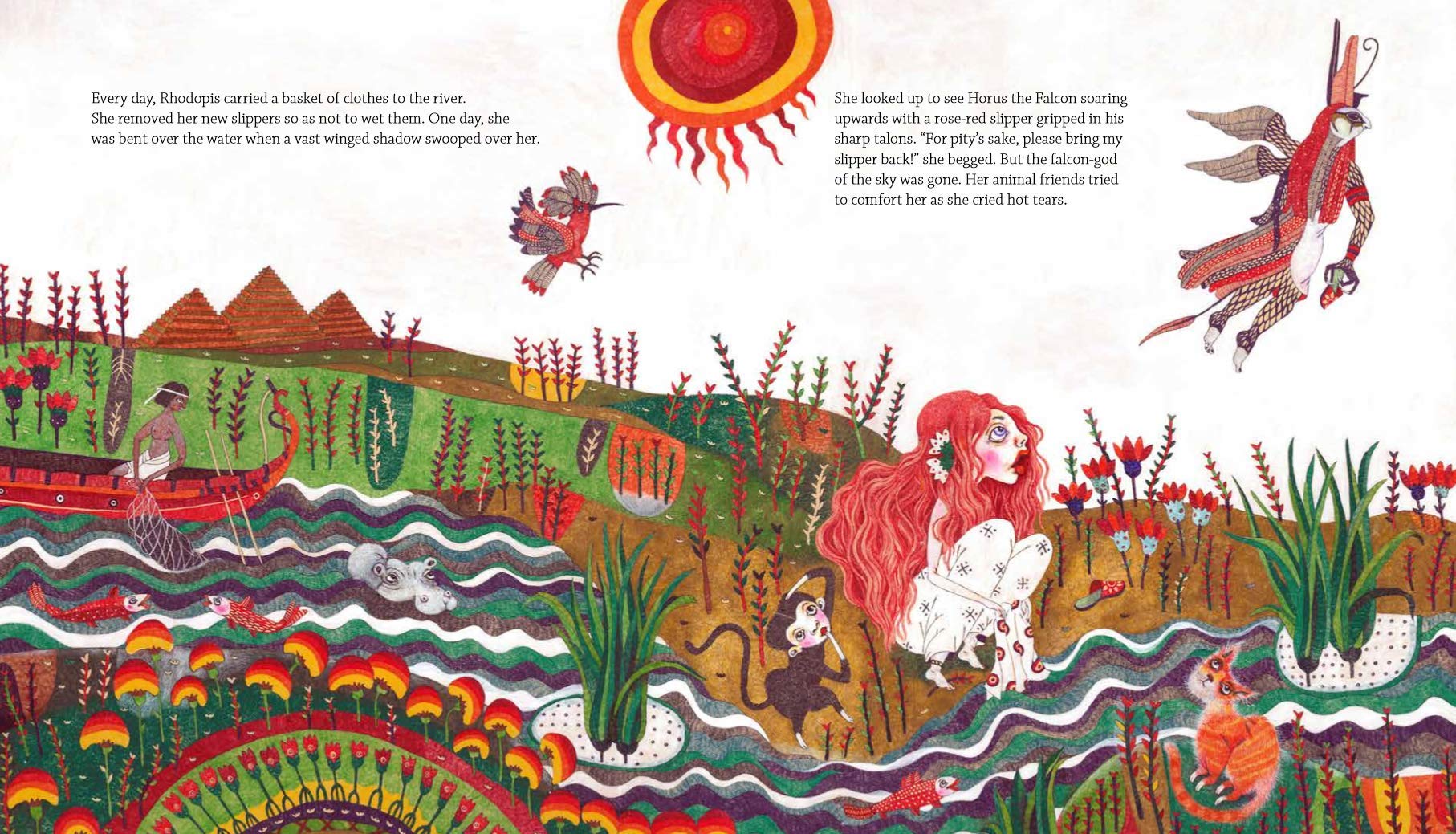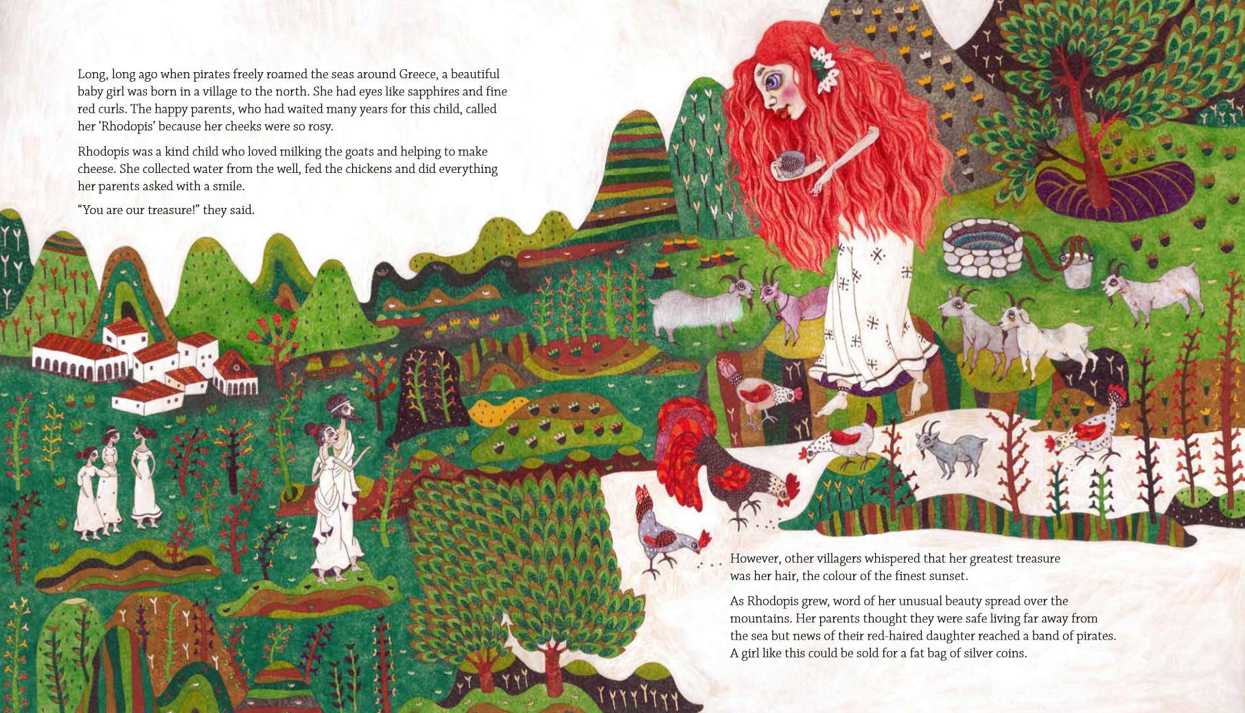 In this earliest-known version of Cinderella, a rosy-cheeked girl called Rhodopis is abducted by bandits from her home in Greece and enslaved in Egypt. Although she finds friends, she remains unhappy, until one day the gift of a pair of beautiful slippers leads her to the King of Egypt.
