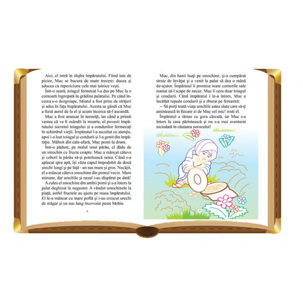Cartea cuprinde basme cunoscute repovestite pe scurt pentru a fi pe înțelesul celor mici. Textul e însoțit de ilustrații colorate, dar și de desene pe care să le coloreze cei mici, liniile de contur indicând în ce nuanță poate fi colorat fiecare element.