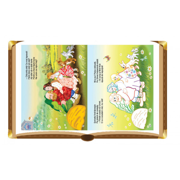 Cartea cuprinde cunoscuta poveste "Ridichea uriașă", adaptată, în versuri, pentru a fi pe înțelesul celor mai mici cititori. Textul e însoțit de ilustrații colorate, dar și de desene pe care să le coloreze cei mici, liniile de contur indicând în ce nuanță poate fi colorat fiecare element.