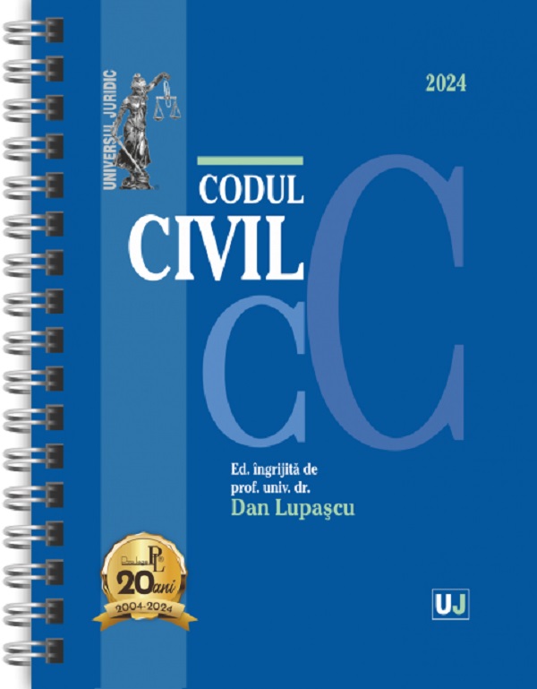 Lucrarea Codul civil Ianuarie 2024 (editie spiralata), ingrijita de prof. univ. dr. Dan Lupascu si tiparita pe hartie alba de calitate superioara, contine textul Codului civil actualizat, imbogatit cu dispozitii de aplicare si conexe, cu extrase din Constitutia Romaniei, cu decizii CNA, cu recursuri in interesul legii, cu hotarari prealabile, cu decizii ale Curtii Constitutionale si cu un extras din Legea nr. 140/2022 privind unele masuri de ocrotire pentru persoanele cu dizabilitati intelectuale si psihosociale si modificarea si completarea unor acte normative, necesare unei depline intelegeri a reglementarii.