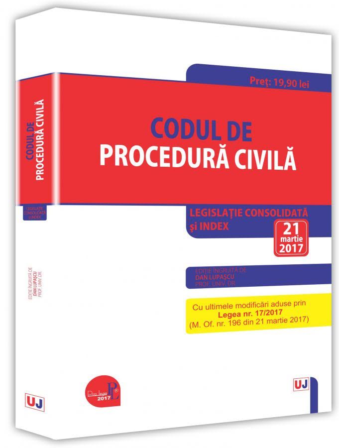 Editia 1/2017, tiparita pe hartie alba de calitate superioara, ingrijita de prof. univ. dr. Dan Lupascu, contine textul Codului de procedura civila (Legea nr. 134/2010), republicat in M. Of. nr. 247 din 10 aprilie 2015, actualizat la data de 21 martie 2017, completat cu dispozitii conexe, tranzitorii si de aplicare, necesare unei depline intelegeri a acestora.