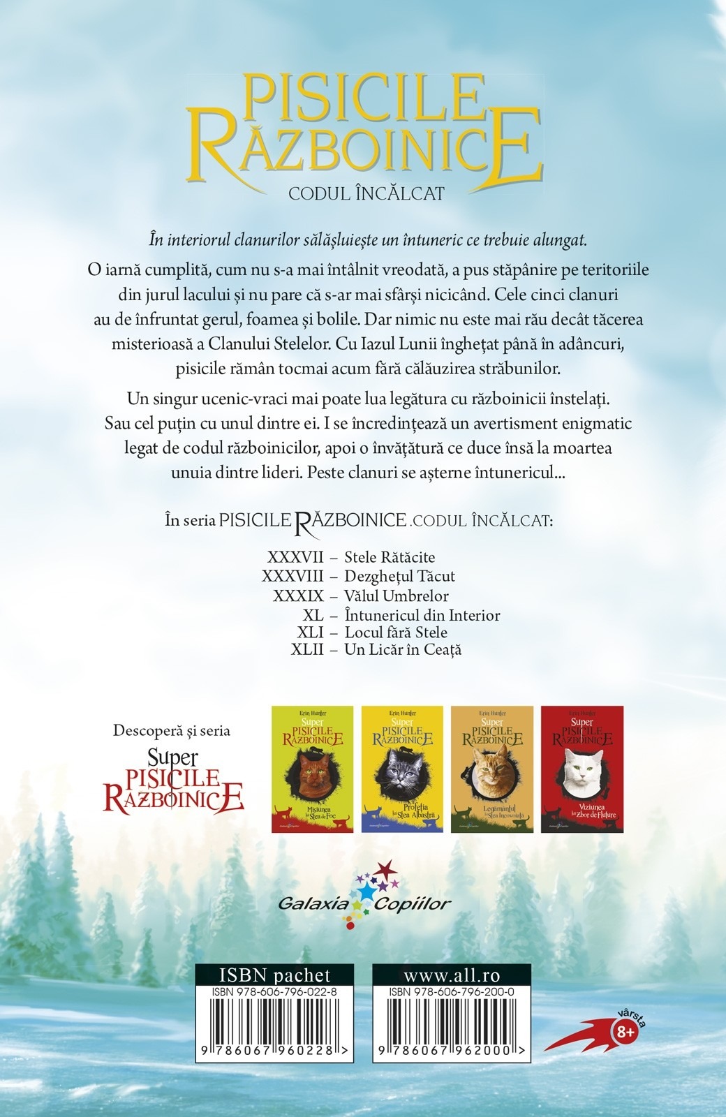 Acțiunea se desfășoară într-o iarnă necruțătoare, cum pisicile n-au mai trăit niciodată. Iazul Lunii este complet înghețat. Gerul cumplit, foametea și bolile devastatoare pun în pericol toate cele cinci clanuri. Însă cea mai înspăimântătoare provocare este dată de tăcerea tulburătoare a Clanului Stelelor. Legătura cu strămoșii războinici pare imposibil de restabilit.