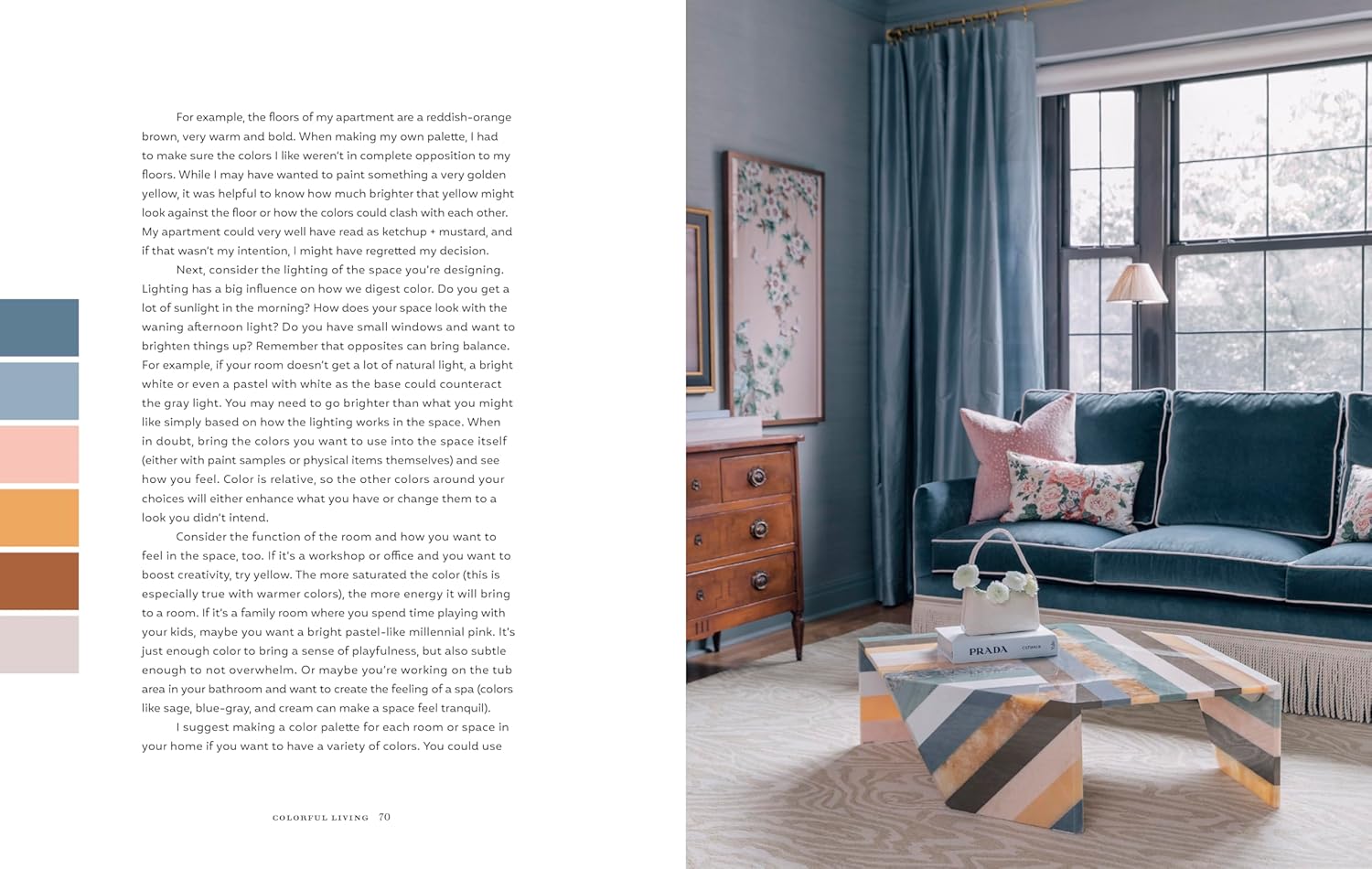 In Colorful Living, writer, photographer, and professional color consultant Rachel Mae Smith explains why color is so powerful and how you can use it to brighten up your world. After a fascinating (and painless!) introduction to color theory, Rachel takes you step by step through your home (walls, furniture, decor, art), your closet (clothing, jewelry, shoes, accessories), and other aspects of your lifestyle, sharing simple, creative, and fun ways to add pops of your desired colors everywhere.