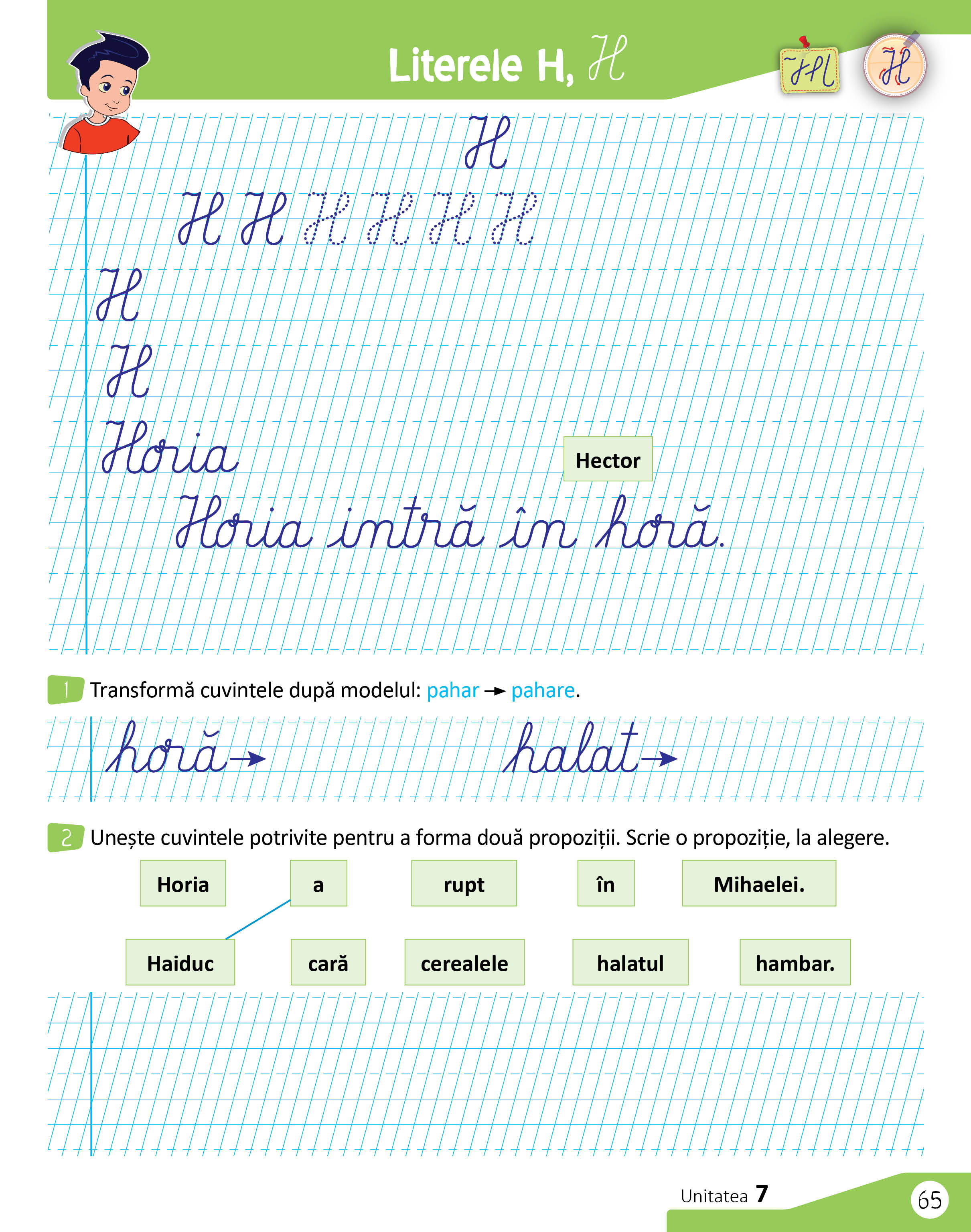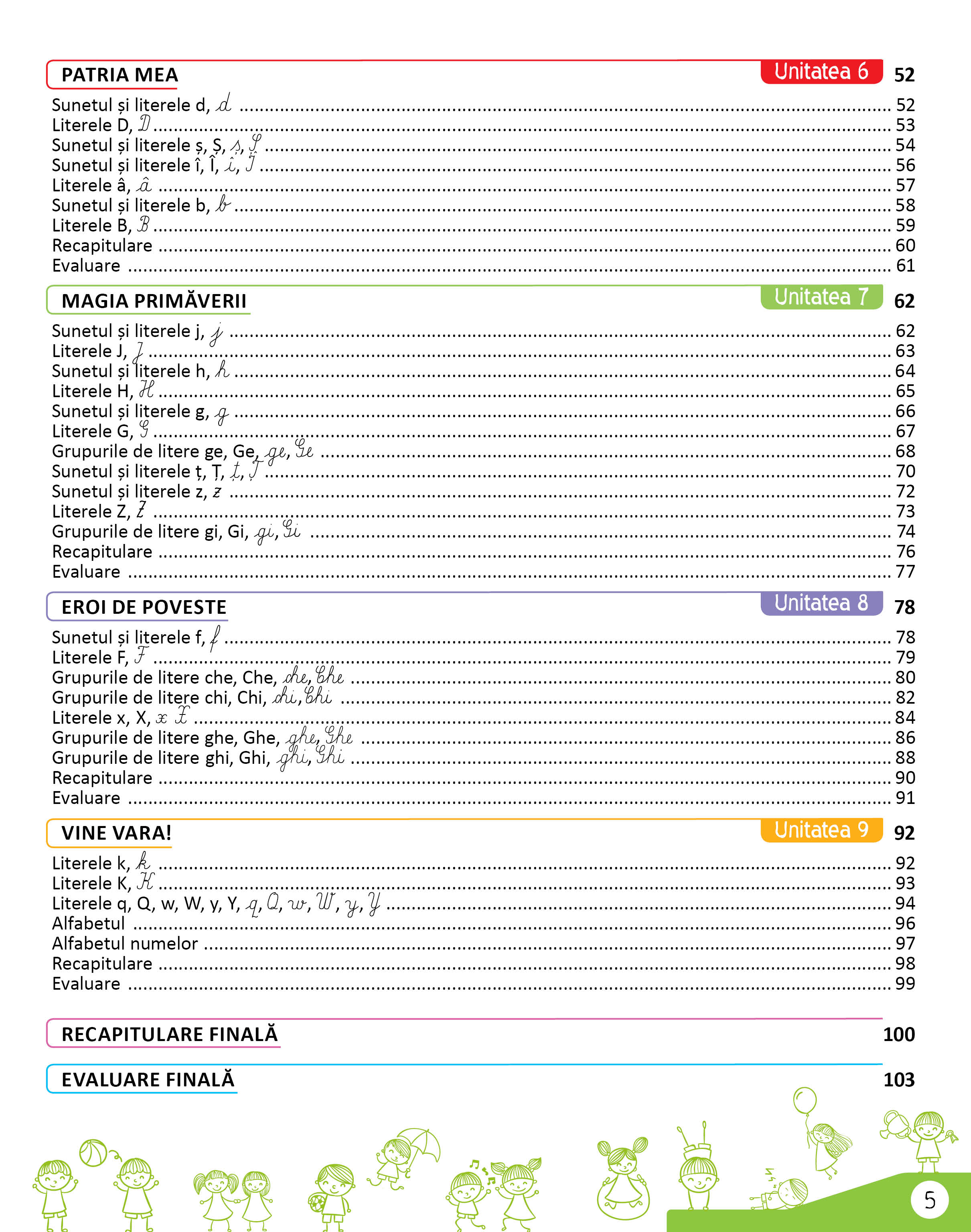 Prin maniera în care este structurat, caietul contribuie la optimizarea procesului de predare-învățare-evaluare, cele nouă unități de învățare oferind elevilor contexte de familiarizare cu noțiuni noi, de exersare, consolidare a deprinderilor și abilităților de citit-scris, de sistematizare a achizițiilor dobândite, de evaluare și autoevaluare a propriilor capacități.
