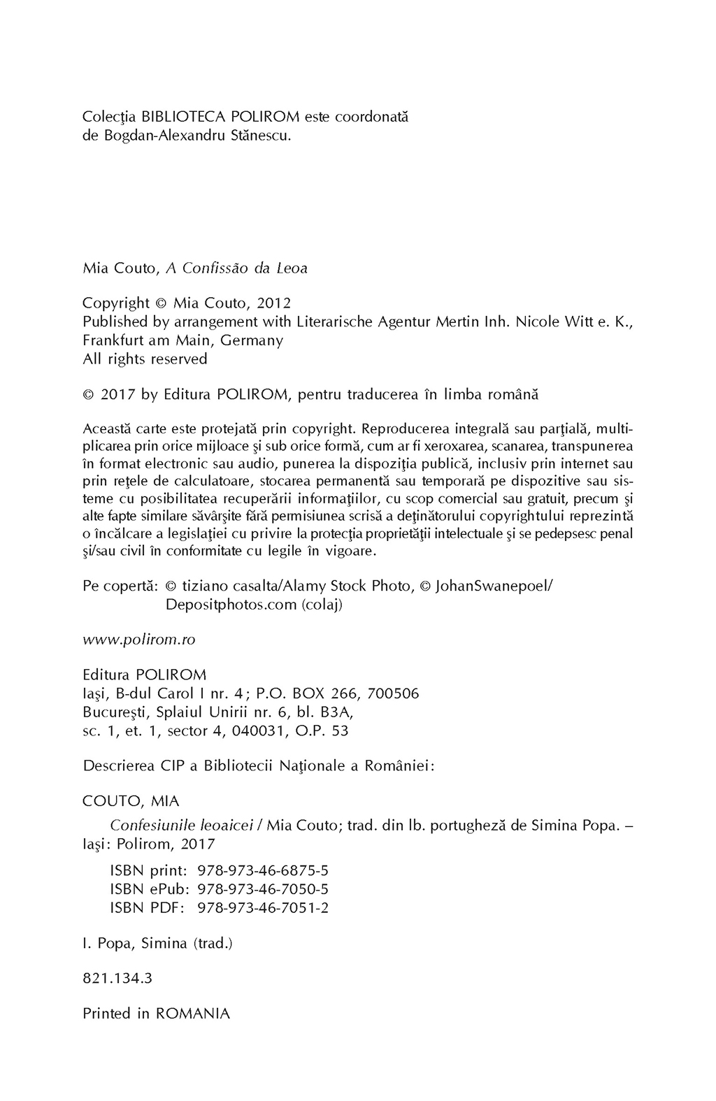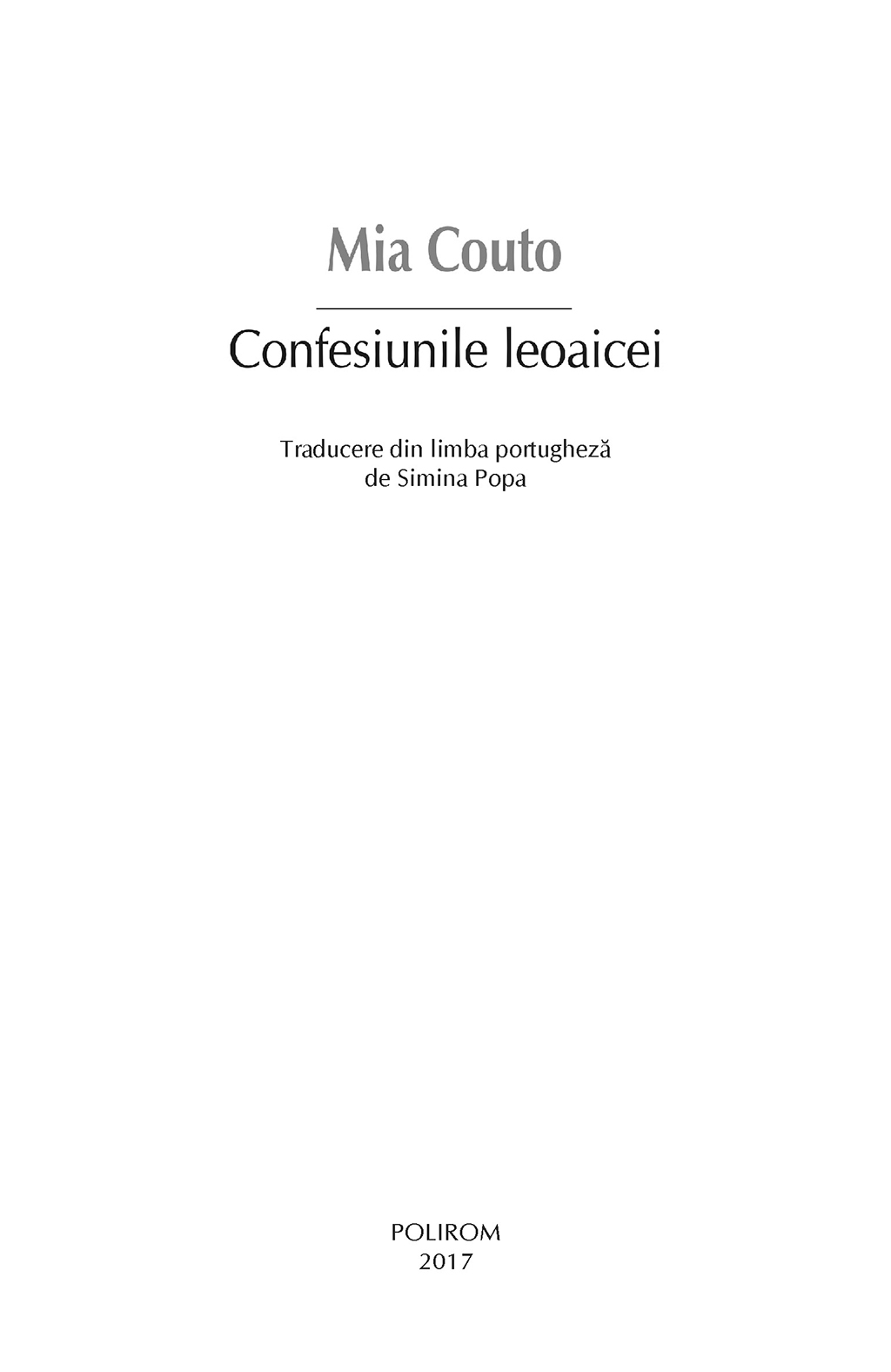 O întîmplare adevărată – unul după altul, atacurile leilor provoacă moartea locuitorilor unei regiuni îndepărtate din nordul Mozambicului – este pretextul lui Mia Couto pentru a scrie un roman surprinzător. Însă nu este vorba neapărat despre lei şi vînătoare, ci despre bărbaţi şi femei care trăiesc în condiţii extreme. După cum afirmă unul dintre personaje, „aici nu e nici poliţie, nici guvern, şi pînă şi Dumnezeu există doar cîteodată”. Iar Confesiunile leoaicei, prin versiunea lui Mariamar, o locuitoare din satul Kulumani, şi prin jurnalul lui Arcanjo Baleiro, vînătorul angajat să omoare leii, ne demonstrează cum războiul, foamea, superstiţiile pot transforma oamenii în animale sălbatice: „Viaţa te-a făcut neom: atît de mult te-au tratat ca pe un animal, încît chiar ai crezut că eşti un animal”. Pe acest fundal se construieşte şi se dezvoltă figura extraordinară a unei femei – Mariamar.