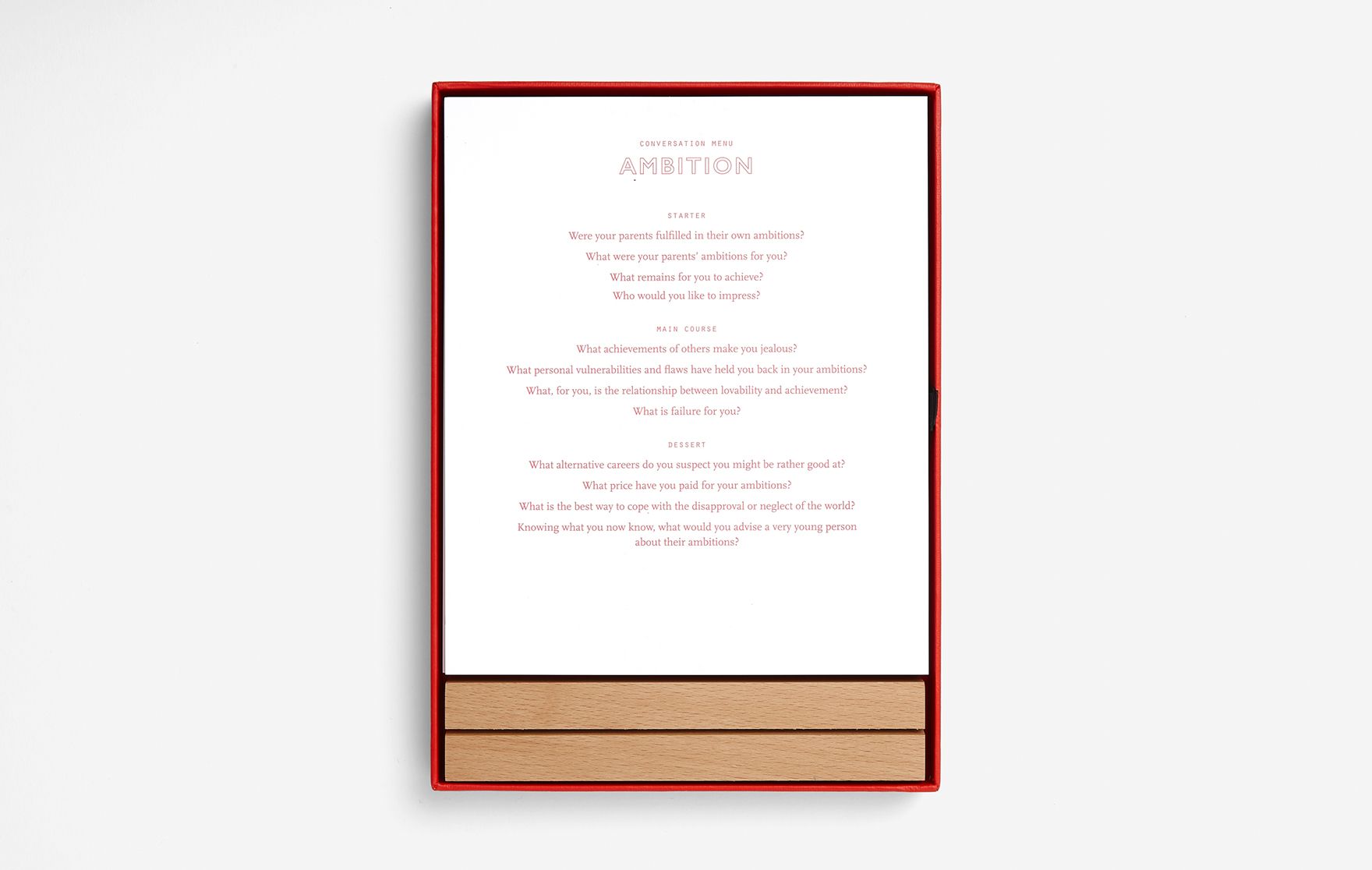 They invite us to open up about themes such as love, money, travel ambition, self-knowledge and the meaning of life. They contain questions and invitations to discussion that will raise smiles, build friendships and foster the best kind of intimacy, ensuring that our meals together can be everything we hoped.