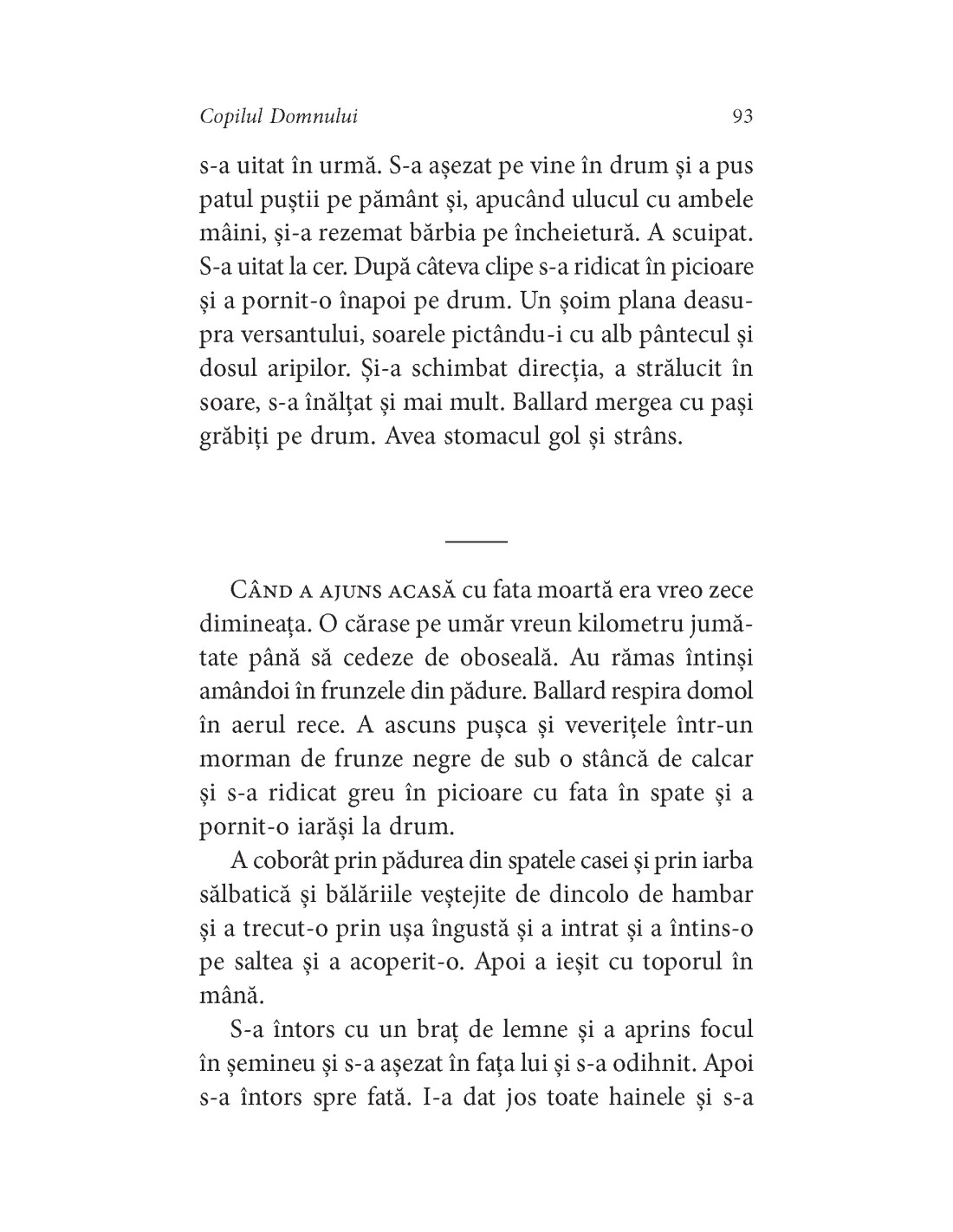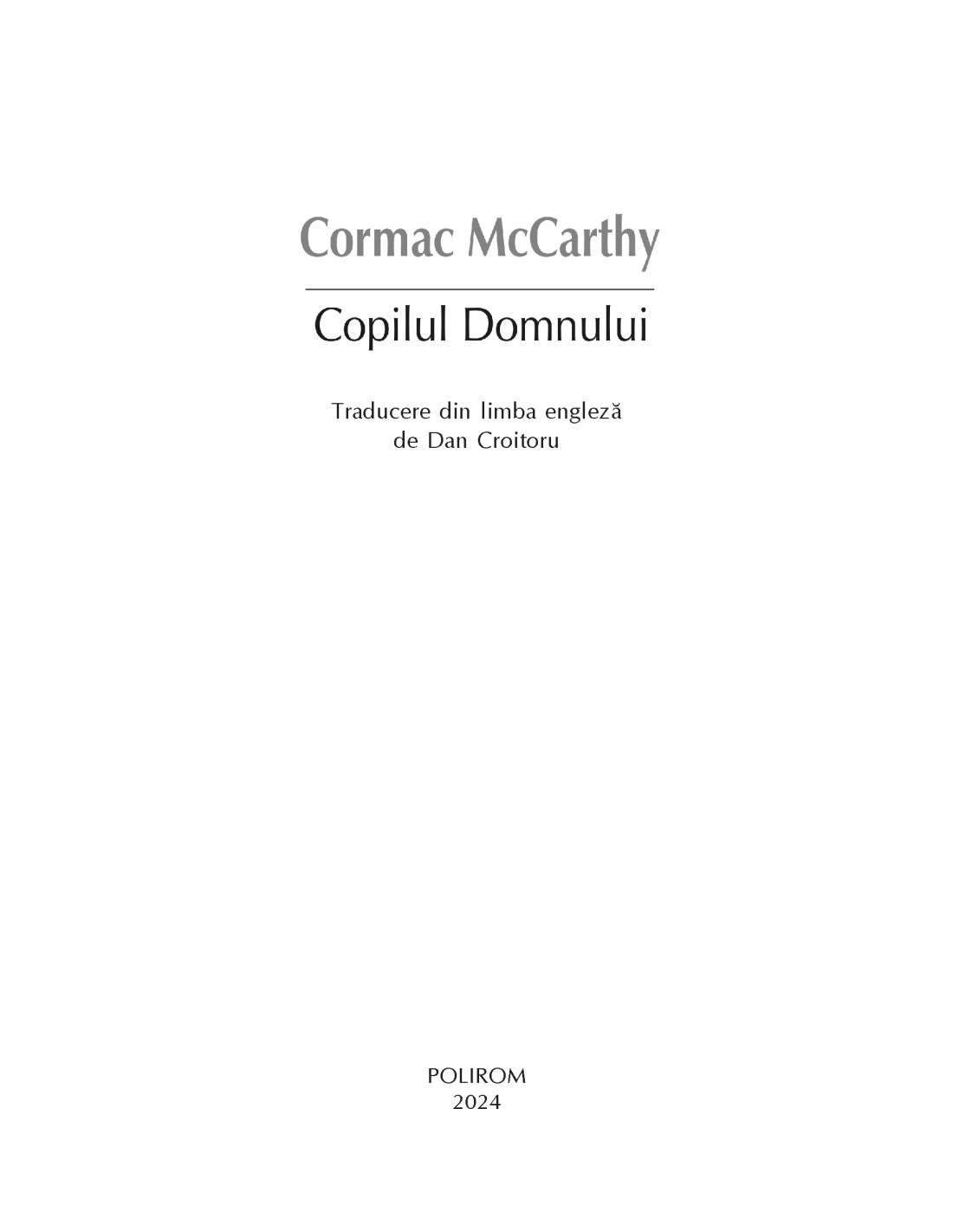 Cel de-al treilea roman al lui Cormac McCarthy, Copilul Domnului (1973), a primit toate elogiile criticii.