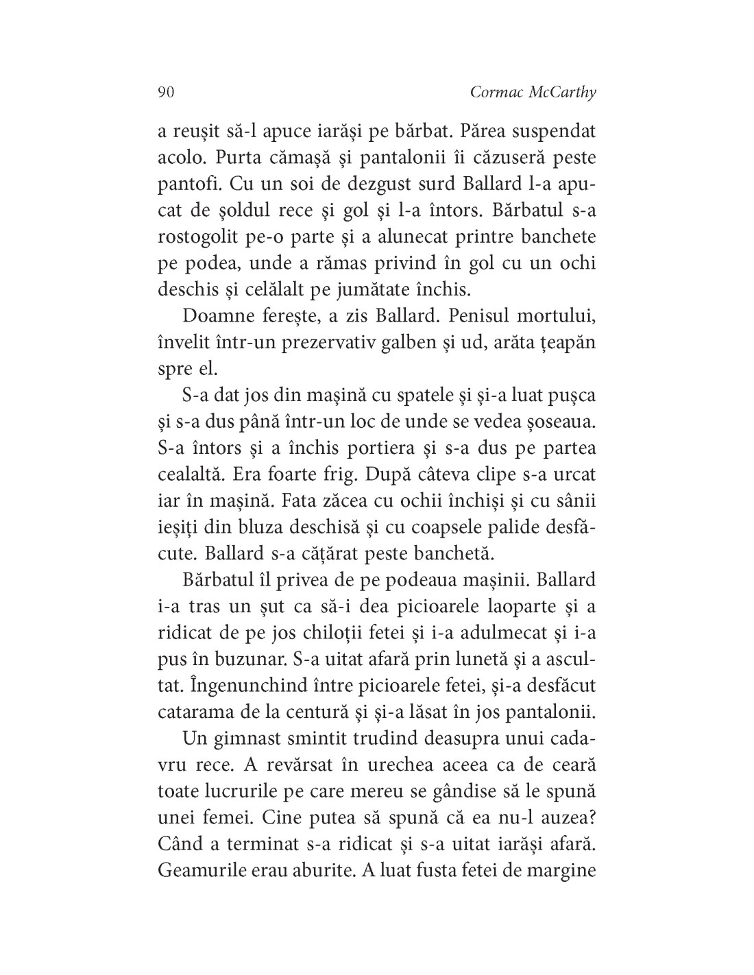 „McCarthy urmăreşte decăderea înfricoşătoare a lui Lester Ballard cu pasiune, tandreţe, expresivitate şi umor, care în momentele sale cele mai bune este în perfect acord cu ironia amară a Sudului.” (The Times Literary Supplement)