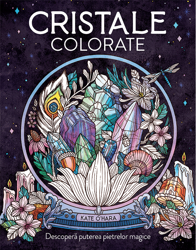 Descoperiţi puterea vindecătoare a cristalelor pe măsură ce vă aventuraţi în această fascinantă călătorie de colorat.