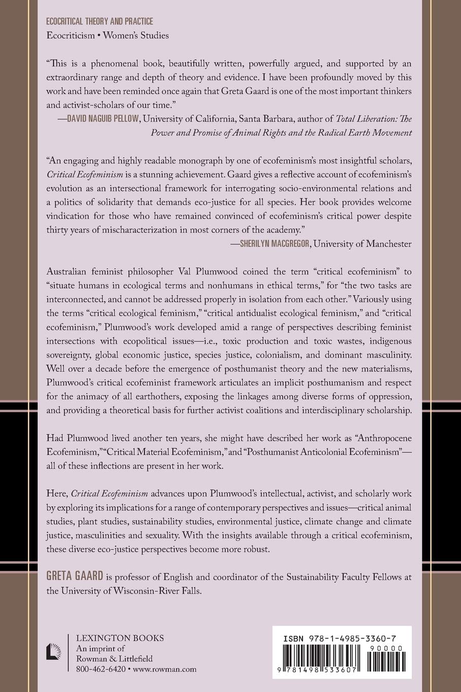 Had Plumwood lived another ten years, she might have described her work as "Anthropocene Ecofeminism," "Critical Material Ecofeminism," "Posthumanist Anticolonial Ecofeminism"-all of these inflections are present in her work. Here, Critical Ecofeminism advances upon Plumwood's intellectual, activist, and scholarly work by exploring its implications for a range of contemporary perspectives and issues--critical animal studies, plant studies, sustainability studies, environmental justice, climate change and climate justice, masculinities and sexualities. With the insights available through a critical ecofeminism, these diverse eco-justice perspectives become more robust.