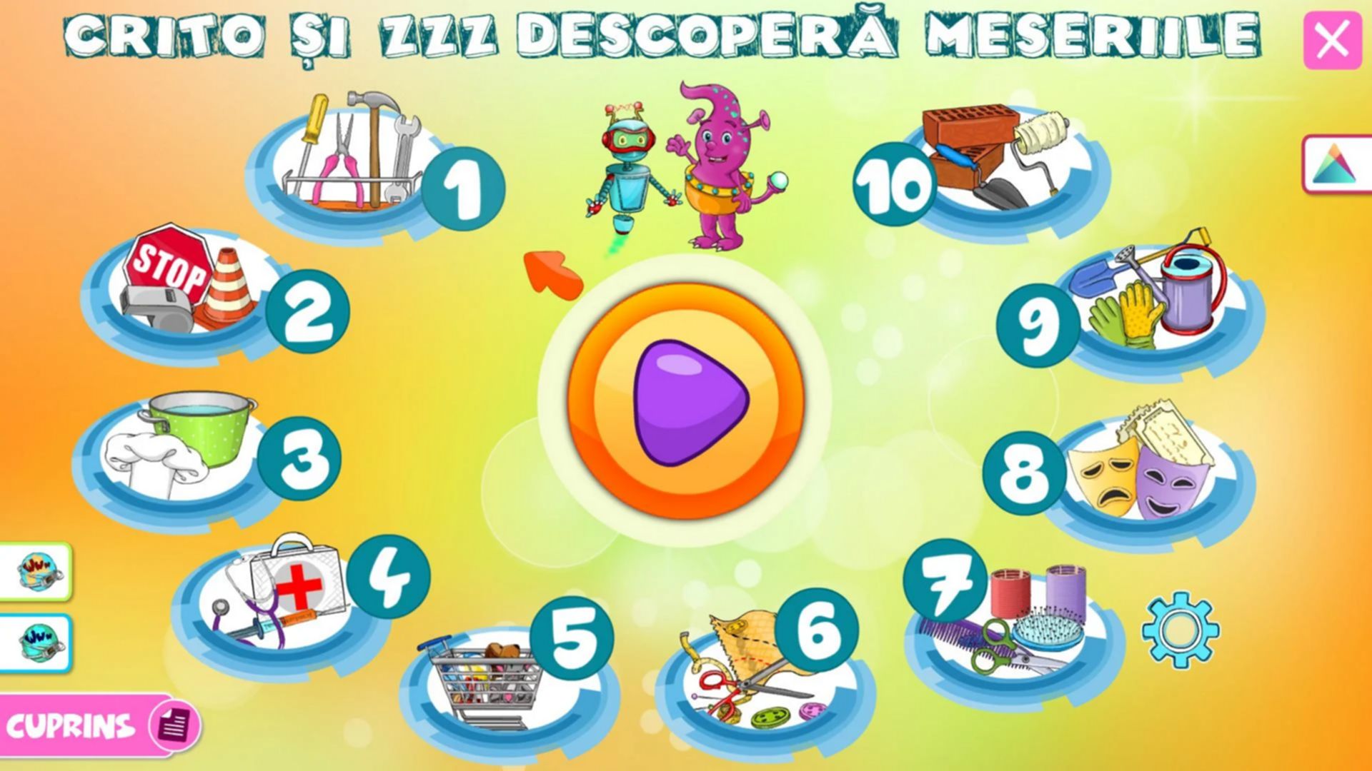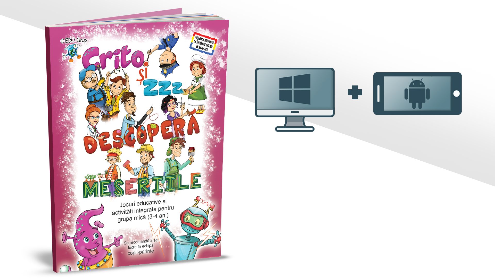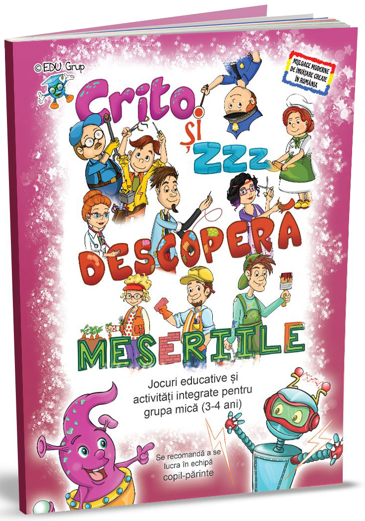 Crito si Zzz descopera meseriile” este un pachet educational cu activitati de invatare integrata pentru matematica si cunoasterea mediului (meseriile), adresandu-se prescolarilor din grupa mica.