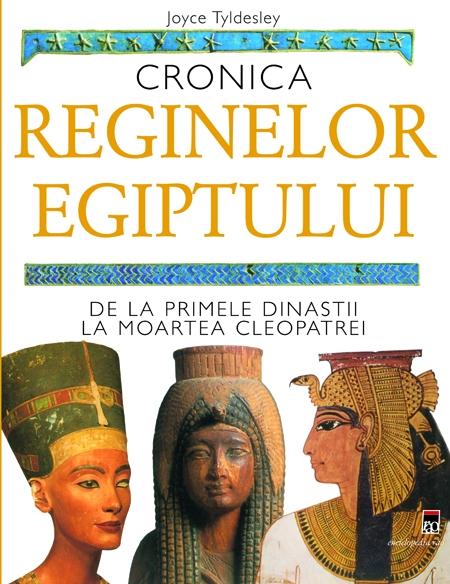 Prima istorie completa a pitorestilor regine ale egiptuluibiografii pline de culoare ale reginelor egiptului, acoperind 3 000 de ani de istorie, de la perioada dinastica timpurie la sinuciderea cleopatrei in anul 30 i.hr.povestile unor regine celebre, Hatshepsut,Nefertiti si Nefertari, precum si ale consoartelor regale mai putin cunoscute dezvaluie diversele roluri pe care le putea indeplini o regina, de la cel de sotie si mama devotata la cel de inlocuitoare a sotului sau in v remuri de criza si la cel de suveran. Sectiuni speciale dedicate unor teme diverse, de la nasterea copiilor la peruci pun in evidenta diferite aspecte ale civilizatiei egiptene. La acestea se adauga arbori genealogici si numeroase casete cu informatii suplimentare. Tabelele cronologice constituie un ghid rapid asupra cronologiei reginelor. Cartea contine 273 de ilustratii, dintre care 173 color, inclusiv portrete, reconstituiri si desene liniare.