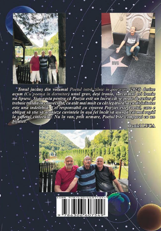 „Tonul jucăuș din volumul Poetul intră zilnic în poezeum (2023) devine acum (Cu poema în dormitor, Editura Castrum de Thymes, Giroc, 2024) unul grav, deși ironia, sarcasmul ori ironia nu lipsesc. Și aceasta pentru că Poezia este un lucru cât se poate de serios și trebuie tratată în consecință, cu atât mai mult cu cât legătura sa cu divinitatea este una indelebilă [„Urmat/urmărit de gloate / Un nobil teslar, frumosul Galilean / Tocmai intrase-n cetate... / (...) / Alături cu Moise, mare legiuitor; / Apăruse Poema slavei pe-un nor...” – Poema, cetate pe roate].” -- Daniel Luca