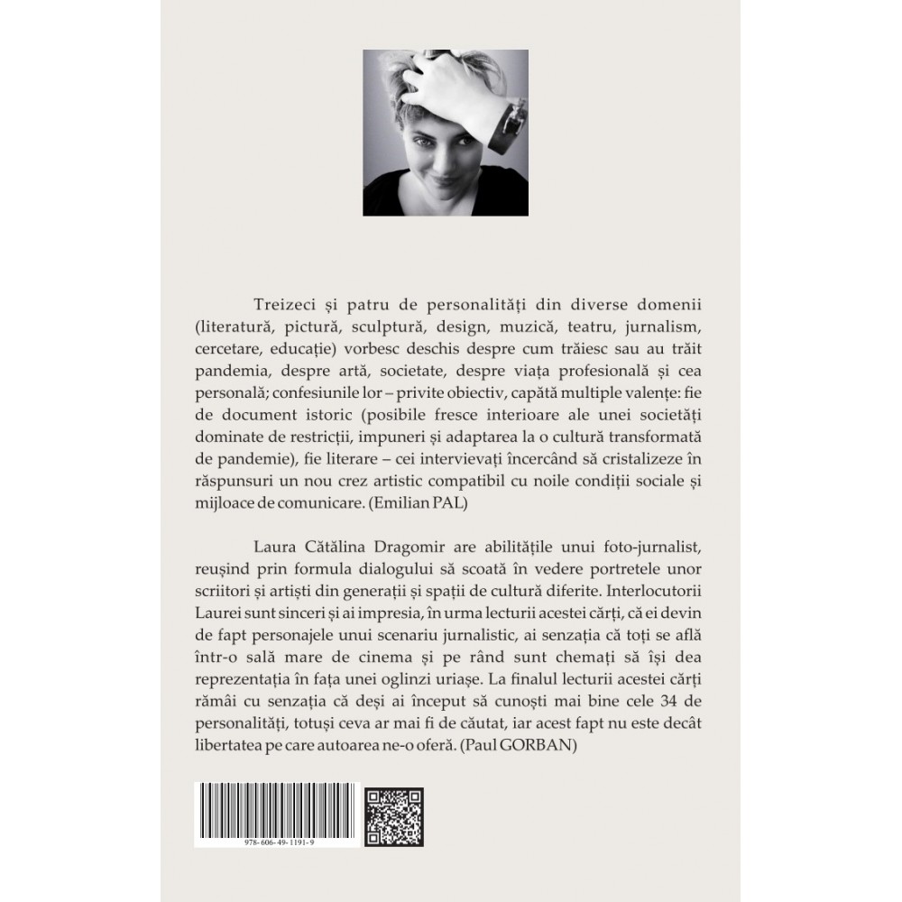 Proiectul „Cultura de proximitate” reprezintă un demers literar și jurnalistic mai puțin familiar pe piața de carte din România. Volumul cuprinde 34 de interviuri realizate în perioada 2020-2023 (perioada pandemică și postpandemică), un interval relevant din punct de vedere cultural și uman. Treizeci şi patru de personalități din diverse domenii (literatură, pictură, sculptură, design, muzică, teatru, jurnalism, cercetare, educație) vorbesc deschis despre cum trăiesc sau au trăit pandemia, despre artă, societate, despre viața profesională și cea personală; confesiunile lor – privite obiectiv, capătă multiple valențe: fie de document istoric (posibile fresce interioare ale unei societăți dominate de restricții, impuneri și adaptarea la o cultură transformată de pandemie), fie literare – cei intervievați încercând să cristalizeze în răspunsuri un nou crez artistic compatibil cu noile condiții sociale și mijloace de comunicare.