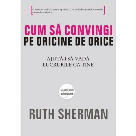 Prin intermediul acestei carti, autoarea, consultant de marca in domeniul comunicarii, ofera o abordare secventiala a tehnicilor si a comportamentelor care te vor ajuta sa obtii rezultatul dorit in orice demers propus. Folosind exemple din confruntari reale insotite de chei de rezolvare, instrumente si foi de lucru, Ruth Sherman te invata cum sa: - iti organizezi ideile rapid si concis si sa le transmiti cu maximum de impact; - realizezi o imagine excelenta, de durata, folosind tehnici obisnuite (dar rar folosite); - dezvolti o charisma personala care sa ii faca pe ceilalti sa te asculte cu atentie; - identifici care este acea unica intrebare de adresat, atunci cand timpul nu iti permite decat una; - recunosti momentul in care sa te retragi, sa iti schimbi strategia si sa astepti momentul oportun pentru relansare.