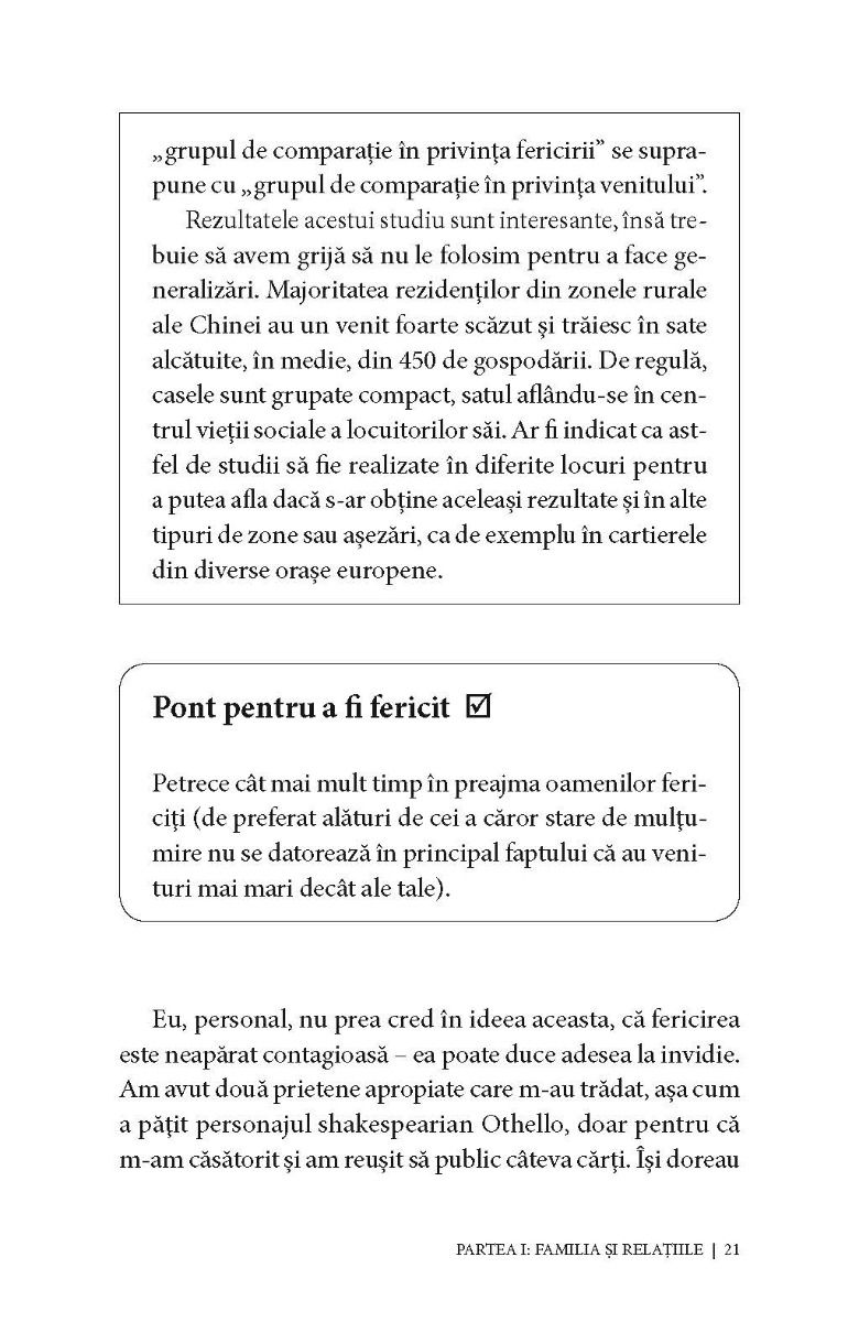 Folosindu-se de dovezi adunate din toate colţurile lumii, autorii dezvăluie întreaga știință din spatele lucrurilor ce le aduc oamenilor fericirea şi o expun aici în câțiva pași simpli și practici pe care îi putem urma şi noi pentru a obține o stare de mulţumire.