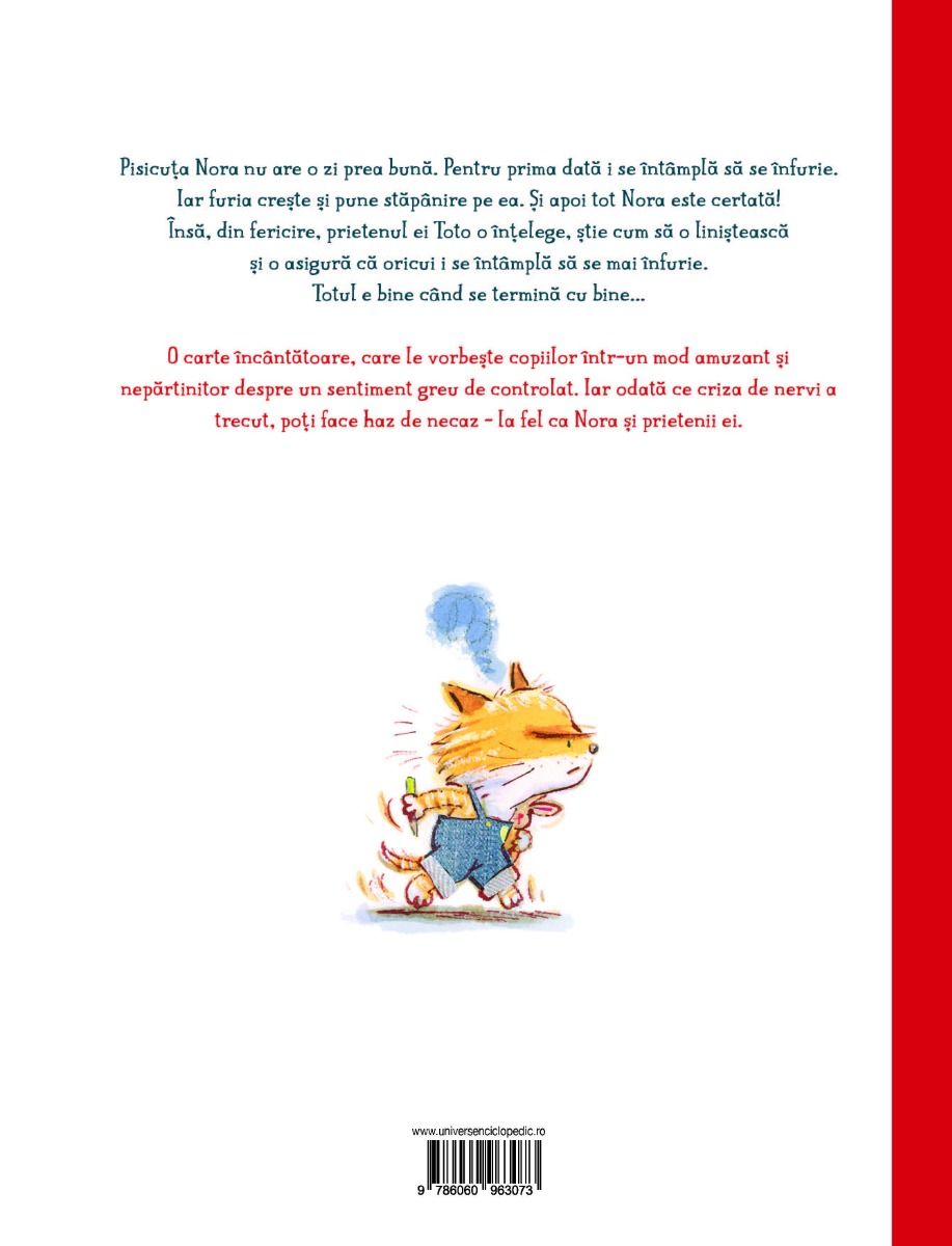 Pisicuța Nora nu are o zi prea bună. Pentru prima dată i se întâmplă să se înfurie. Iar furia crește și pune stăpânire pe ea. Și apoi tot Nora este certată! Însă, din fericire, prietenul ei Toto o înțelege, știe cum să o liniștească și o asigură că oricui i se întâmplă să se mai înfurie. Totul e bine când se termină cu bine...