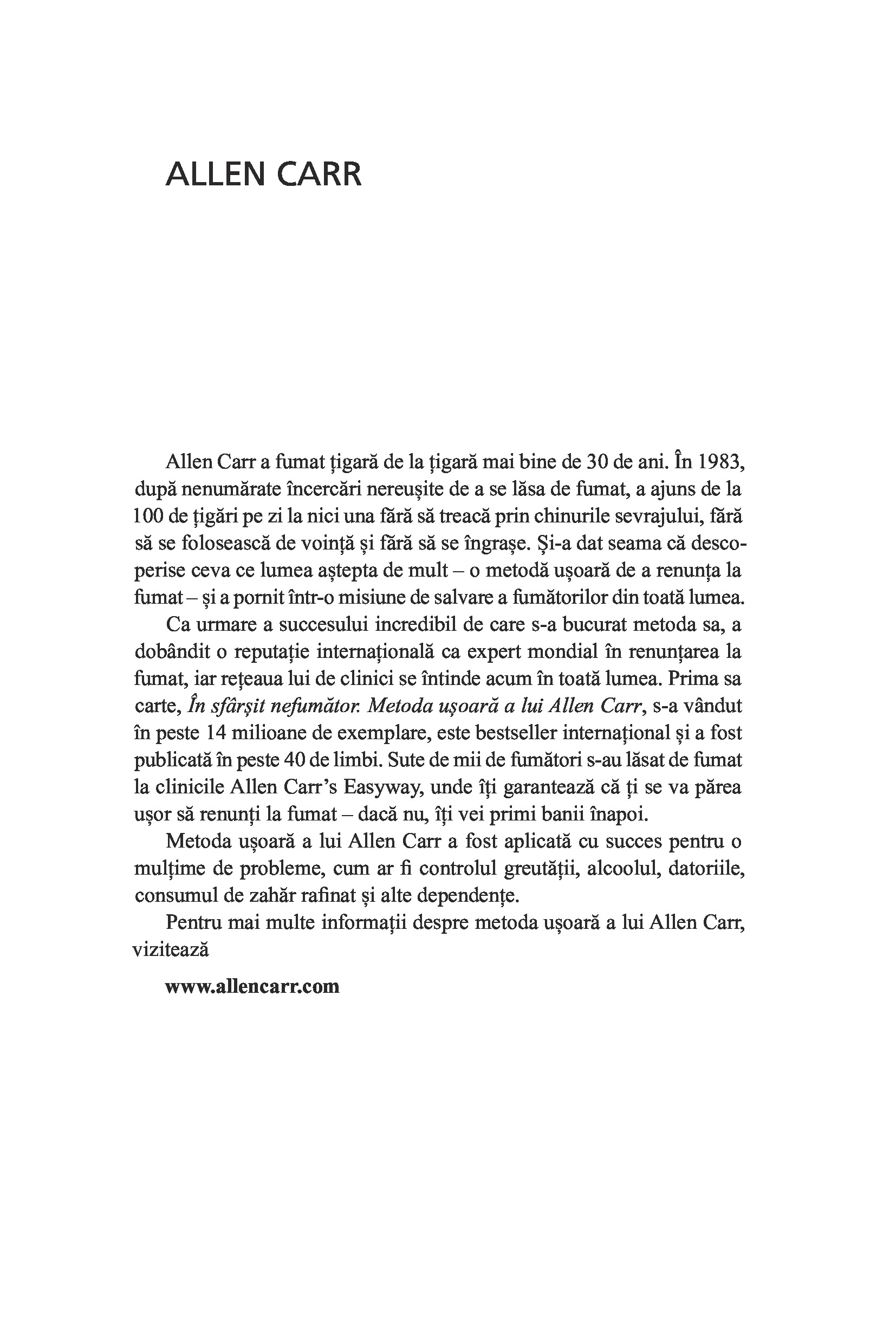 Trebuie doar să citești această carte. La final, definitiv eliberat, te vei întreba cum de-ai rămas atâta timp în capcana dependenței care te-a făcut nefericit.