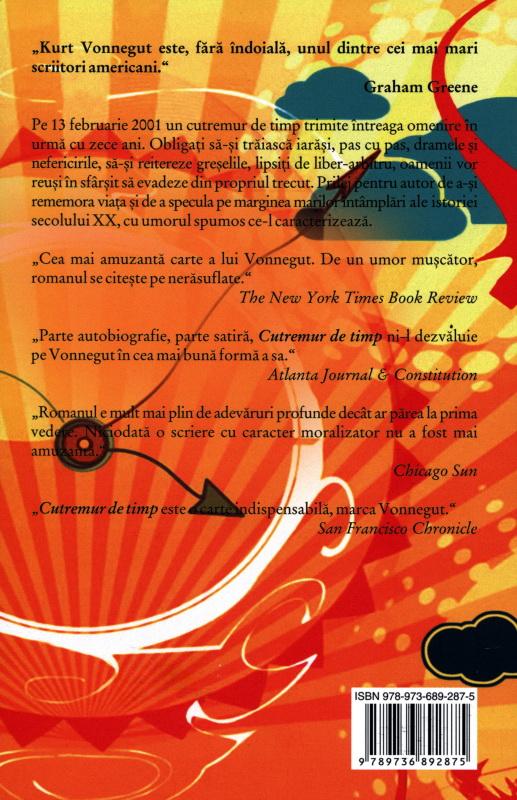 "Cutremur de timp este o carte indispensabila, marca Vonnegut." (San Francisco Chronicle)