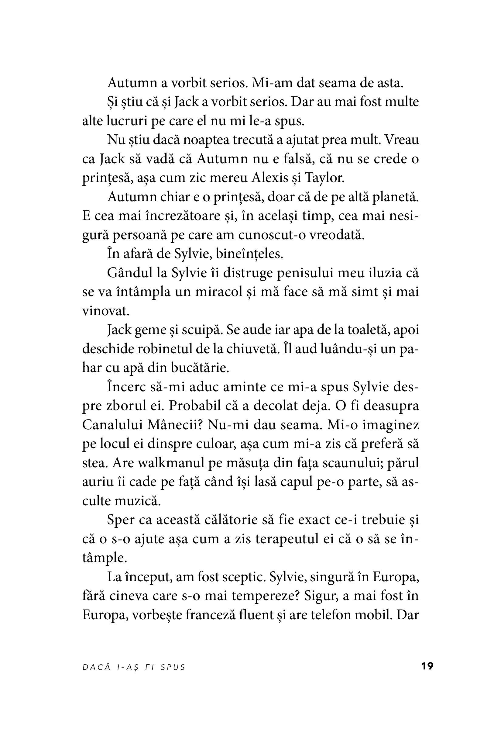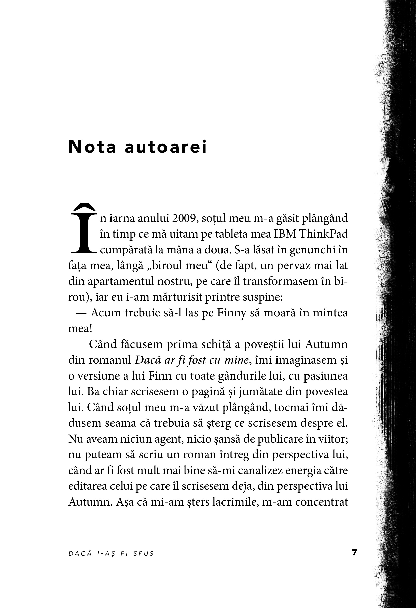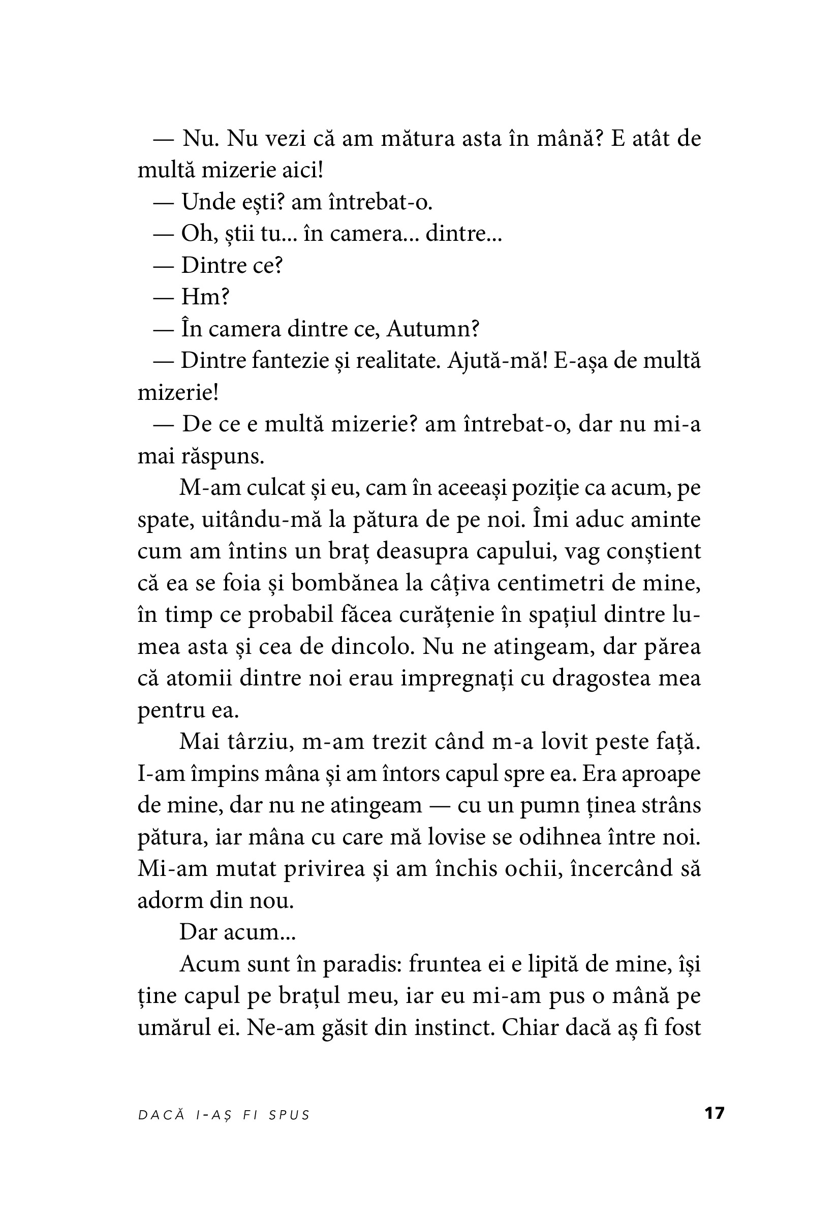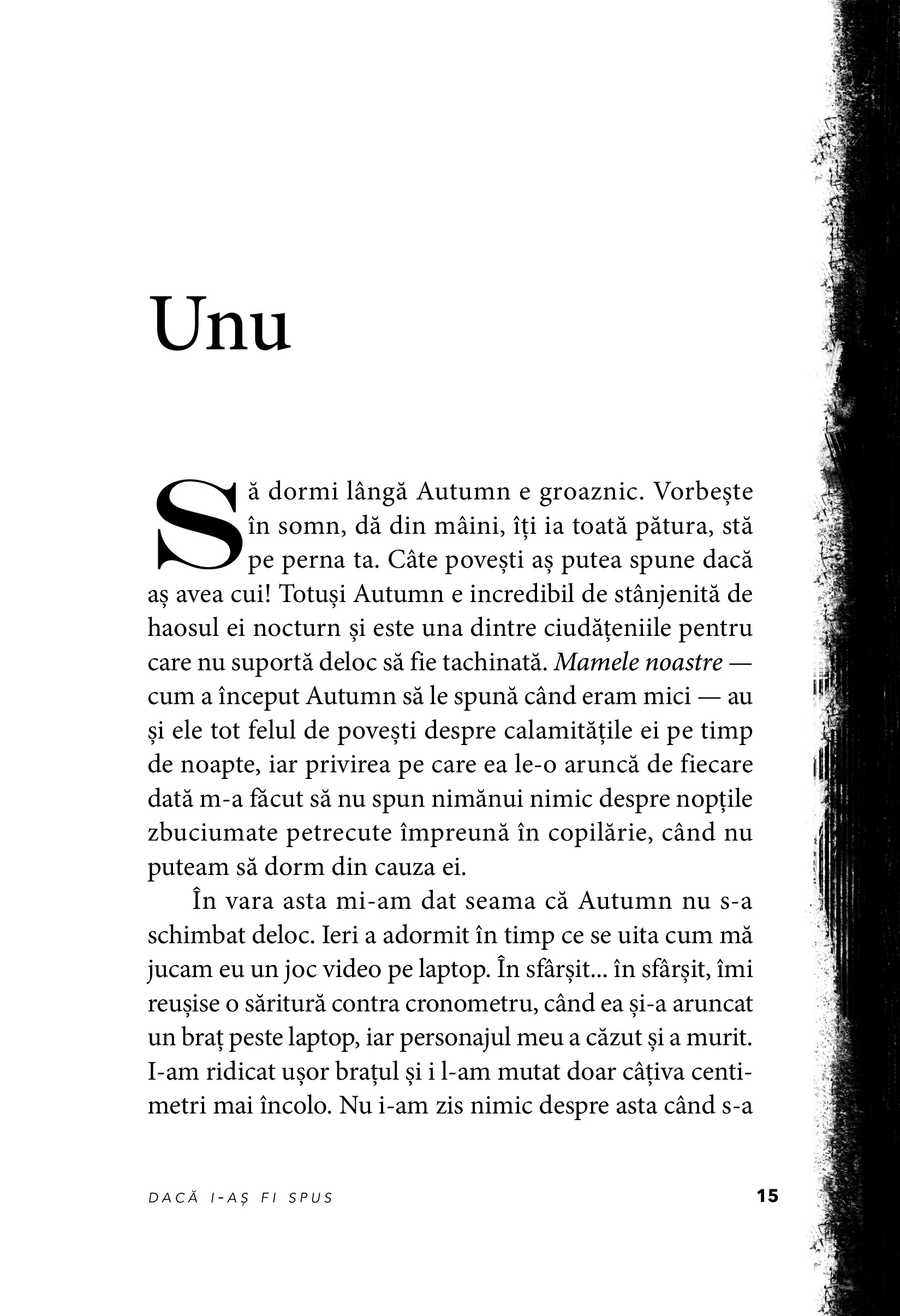 Autumn se înconjoară de cărți și vrea să-și scrie propriul destin — dar nu întotdeauna ai parte de un nou capitol, iar soarta poate fi crudă cu cei îndrăgostiți. Relatată din trei perspective diferite, Dacă i-aș fi spus este o poveste de dragoste ce pare desprinsă din realitate și din care nu lipsesc momentele tragice și legăturile neașteptate, cu rol vindecător.