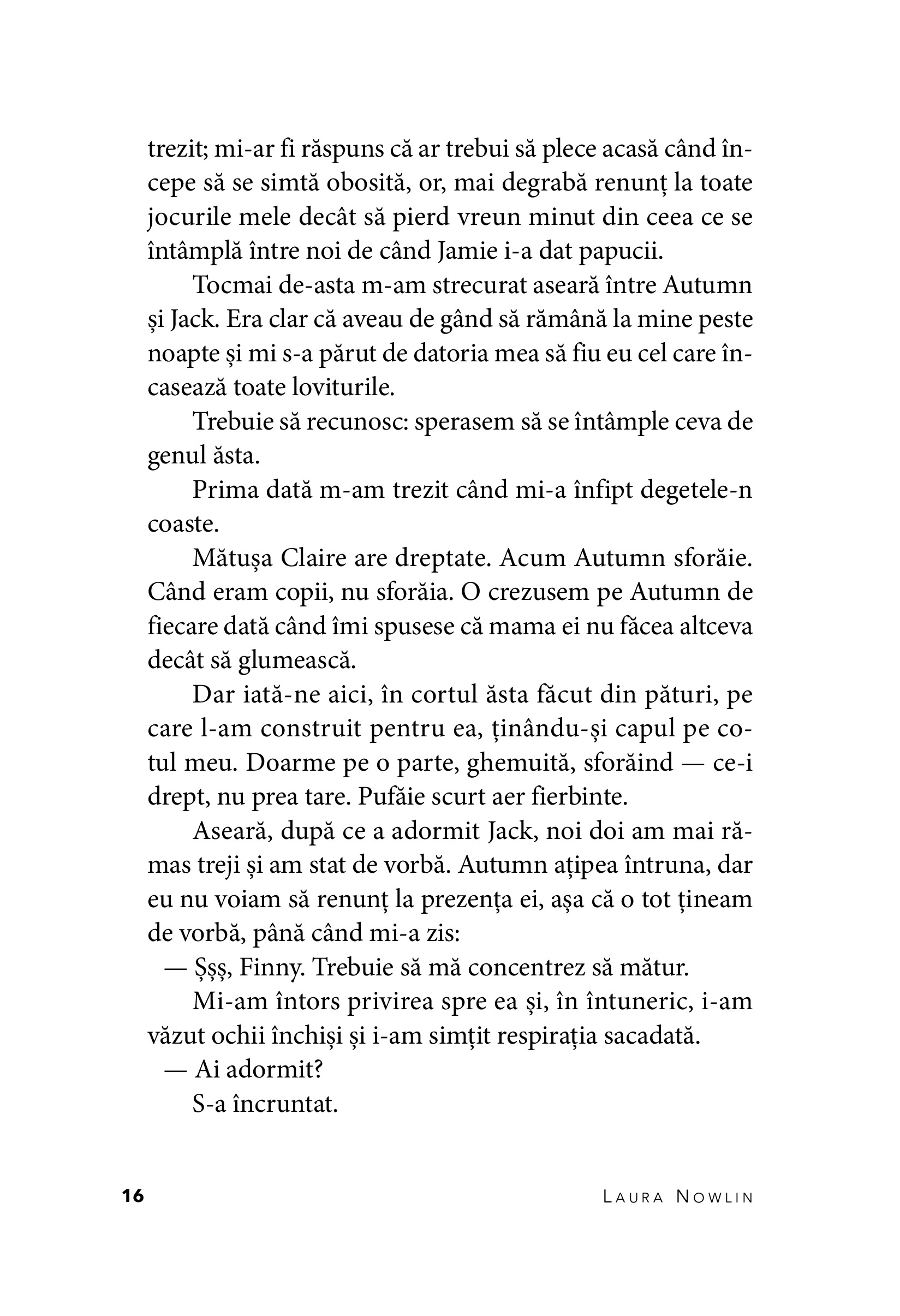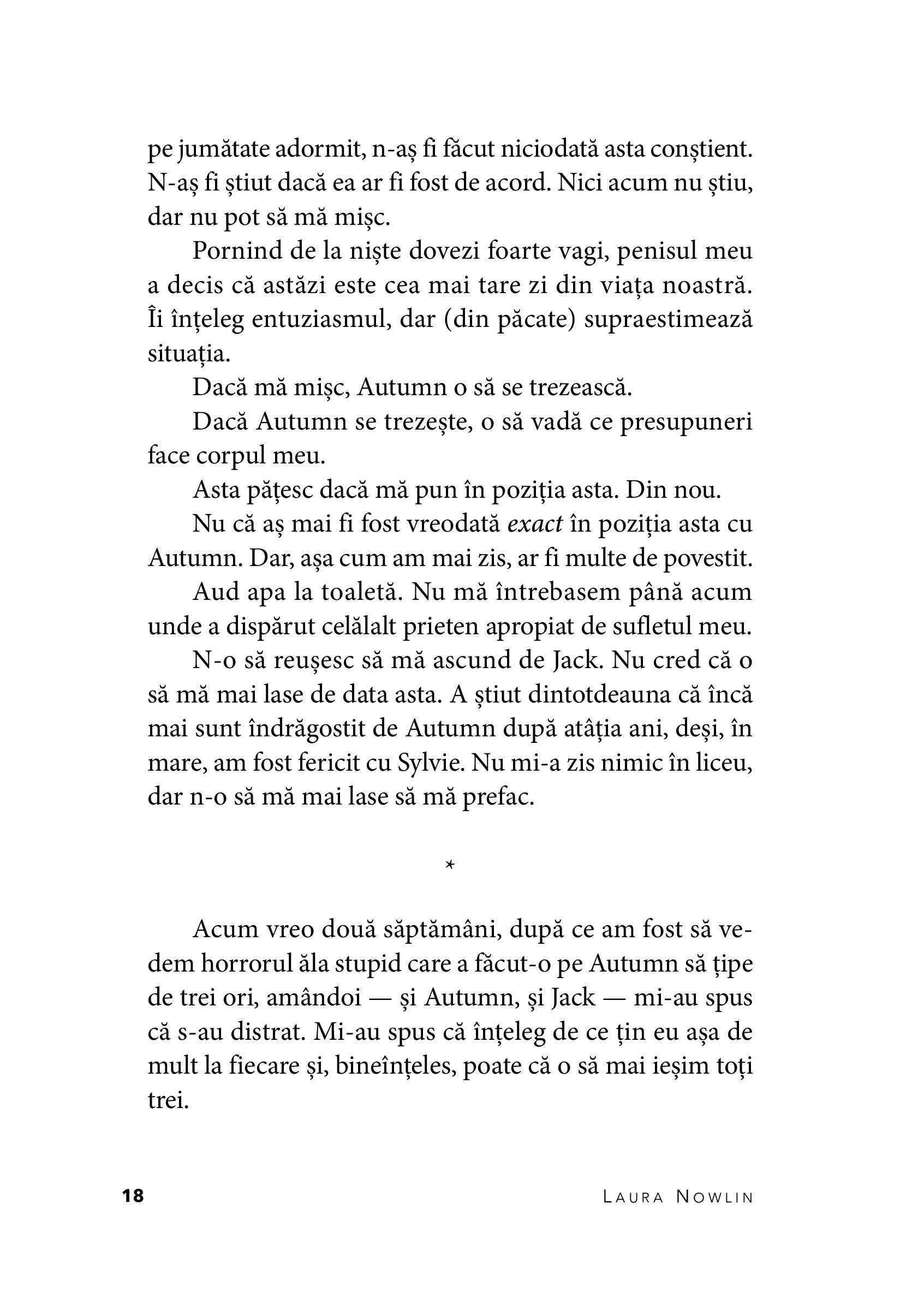 Finn a iubit-o dintotdeauna pe Autumn, care nu este doar fata din vecini, ci însăși viața sa. Dar nu ea este prietena lui, ci Sylvie, pe care Finn nu ar răni-o niciodată, așa încât Autumn nu are cum să știe ce simte el cu adevărat. Jack, cel mai bun prieten al lui Finn, nu este atât De sigur. I-a văzut pe Finn și Autumn împreună. Cum ar fi posibil ca ea să nu știe? Și cum ar putea el să-l susțină și să-l protejeze pe Finn când suferința pare inevitabilă?